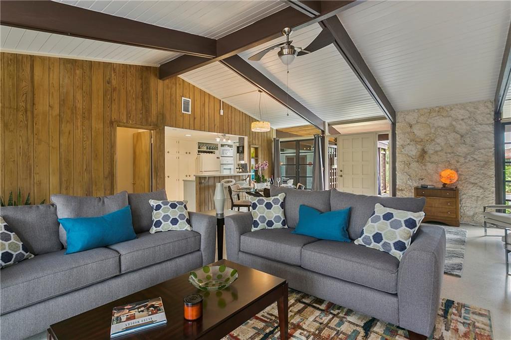 Outstanding mid century modern worthy of Architectural Digest located in exclusive, gated, and East of US 1 BAL HARBOUR. New roof, large outdoor private deck for entertaining, fully fenced backyard, open kitchen with new quartz countertops, polished terrazzo floors throughout, coral rock wall, wood beamed vaulted ceilings, floor to ceiling windows to allow great natural lighting. Large circular driveway with 2 car carport and additional storage. Seconds to Whole Foods, Trader Joes, Pottery Barn etc..