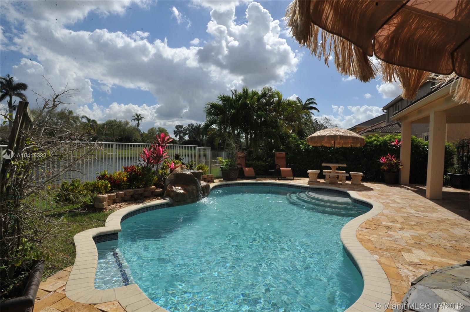 Stunning lakefront home, 5 full bedrooms, 4 full baths plus 6 BR could be office or den off spacious master bedroom suite. Completely remodeled kitchen- granite counter tops. Separate breakfast area. Huge family room, new designer flooring thru-out. Formal dining room. 1 Bedroom downstairs. could be in-laws or maids room. Pool built 2012. Huge patio for entertaining. Roll down hurricane shutters on 2nd floor. very private, No backyard neighbors, on cul-de-sac street. A+ schools. a pleasure to show.