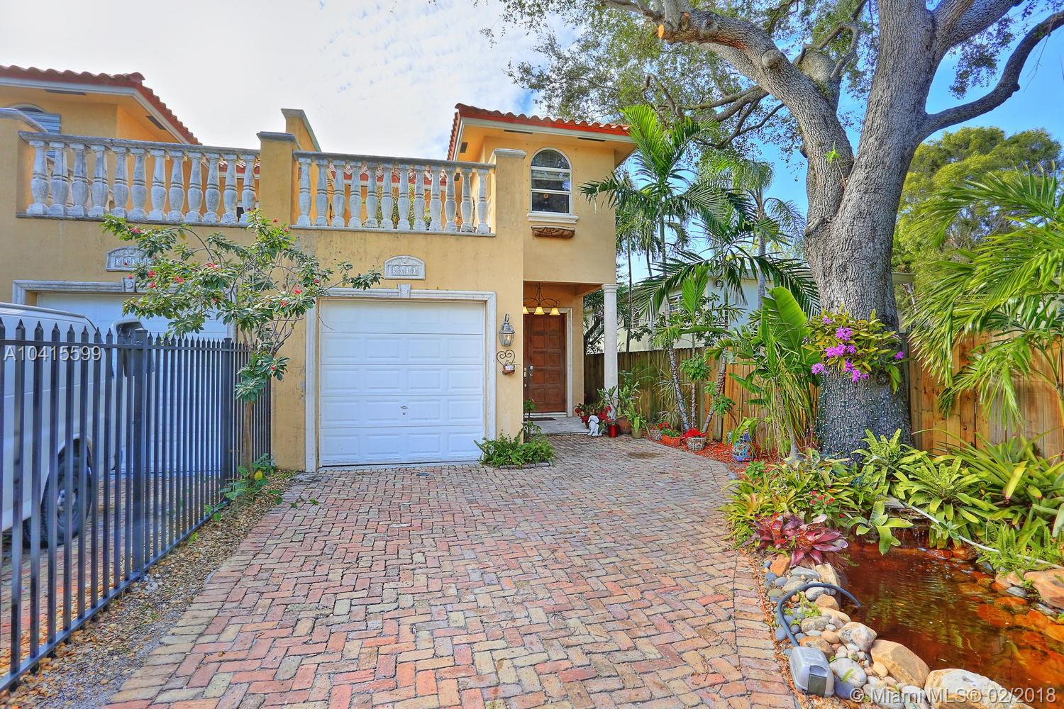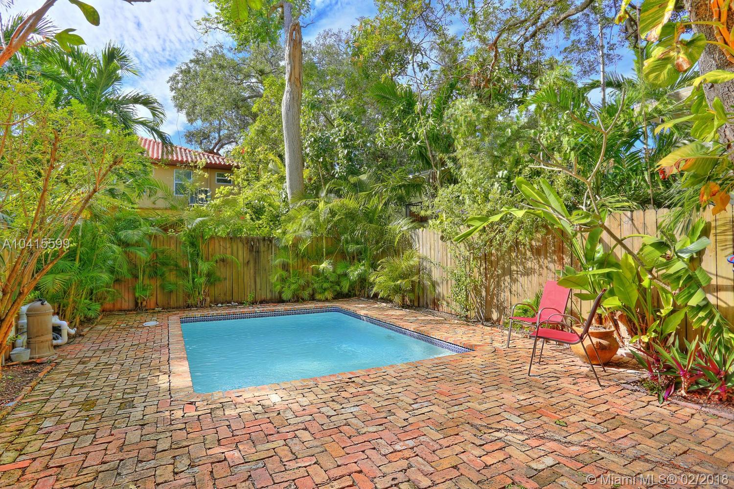 Live an urban lifestyle in this lovely gated townhome, close to the Grove village center’s galleries, boutiques, cafes and bay front parks & marinas. Light filled living spaces and custom kitchen with wood cabinetry, granite countertops, stainless appliances & bar seating. Family room opens to covered terrace & private walled garden with pool surrounded by Chicago brick deck. Travertine & wood floors throughout. Large master suite features a sitting area, walk-in closet, private balcony and luxurious marble bath with spa tub & glass enclosed shower. 1 car garage. Minutes to downtown, MIA, Key Biscayne and the Beaches.