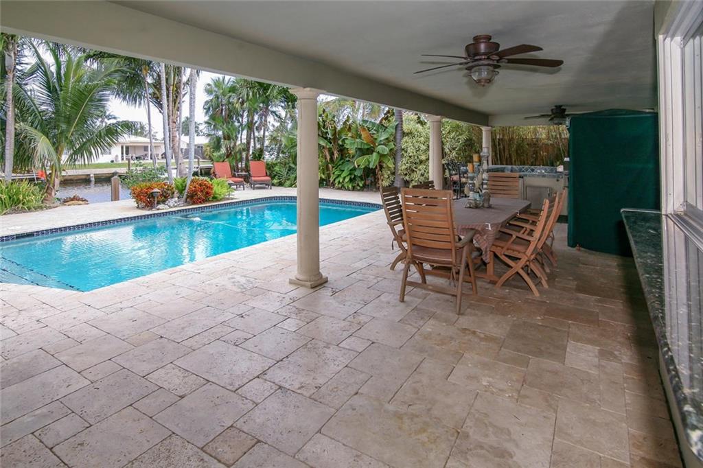 Beautiful waterfront home in desirable Lake Estates, Ft Lauderdale! Completely renovated, 4/3 split floor plan. Gorgeous kitchen with wood cabinetry, granite and SS appliances. Saturnia marble & wood laminate flooring throughout. Tastefully updated bathrooms. Backyard is a private, tropical oasis with luscious landscaping, marble pavers & summer kitchen/BBQ. Impact glass windows & doors. Roof 2013. AC 2016. 80' Dock with Boat Lift capacity up to 15k lbs.