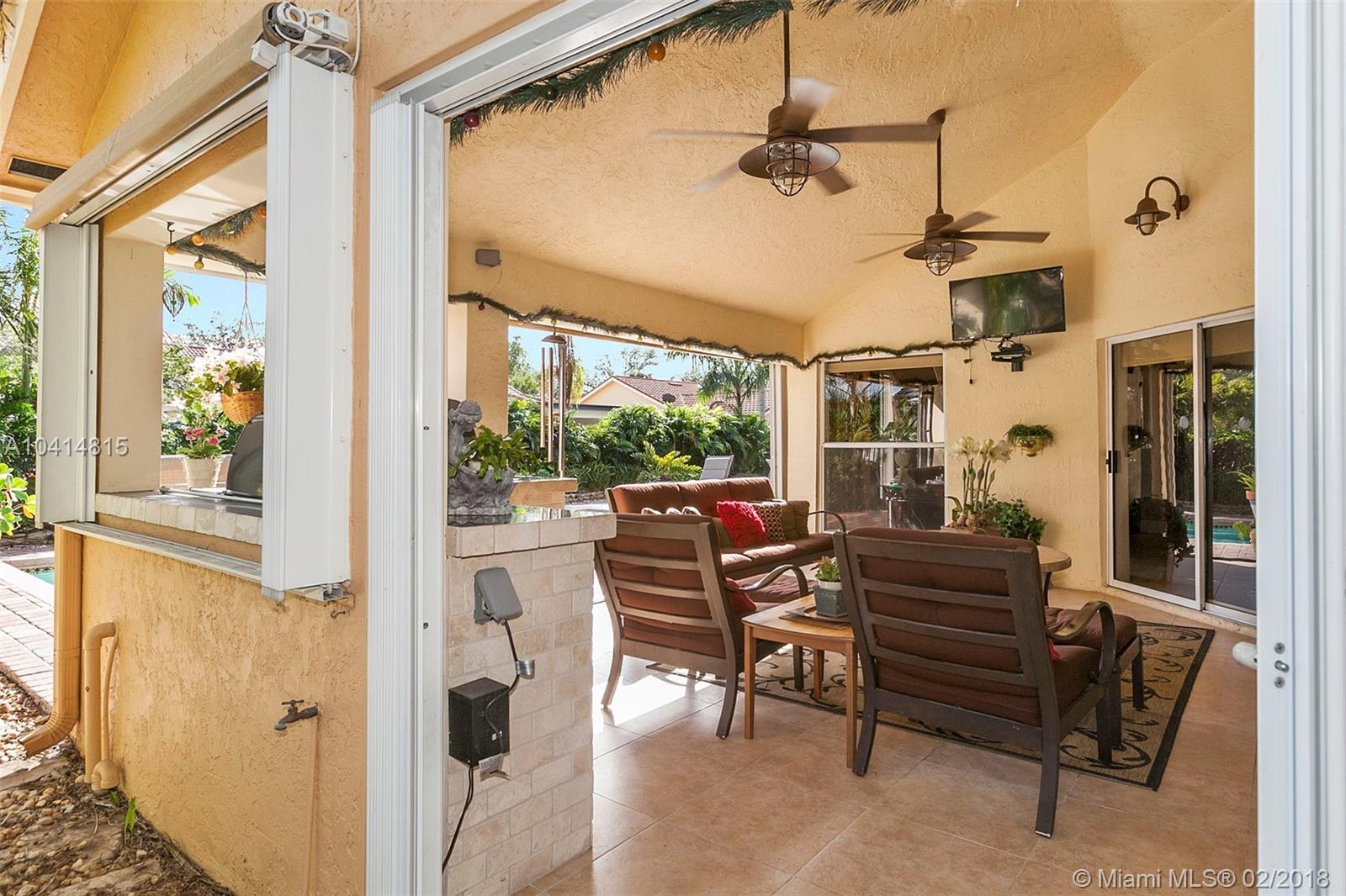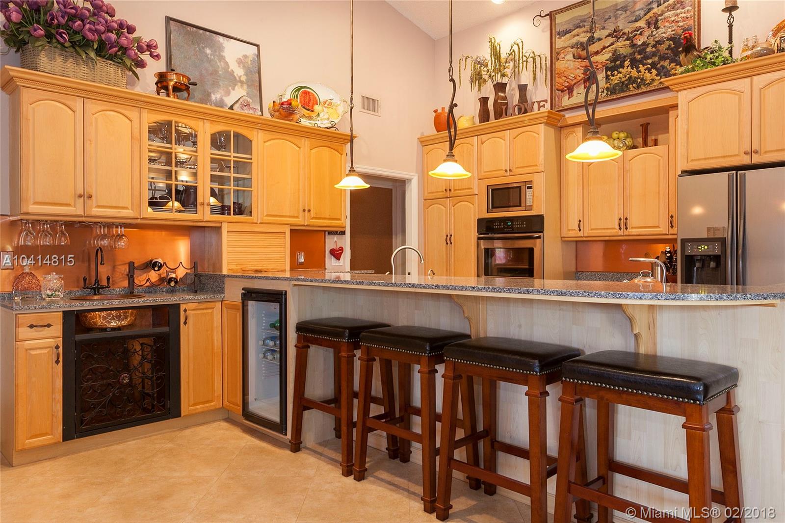 This stunning one story home offers 4 bedrooms plus den offers not only fine finishes but exceptional attention to detail! Breezy open aired outdoor covered lanai with Sunbrella awnings and summer kitchen overlooks heated pool, paver patio and lushly landscaped yard, perfect for entertaining or just relaxing! Chef's kitchen features stainless steel appliances, double oven, silestone countertops, copper backsplash and wine rack. Matte porcelain neutral tile is set on the diagonal in all living areas. Roof installed in 2009, AC in 2014 and pool pump/filter 2015. Front loader washer and dryer. Must be seen to be appreciated!