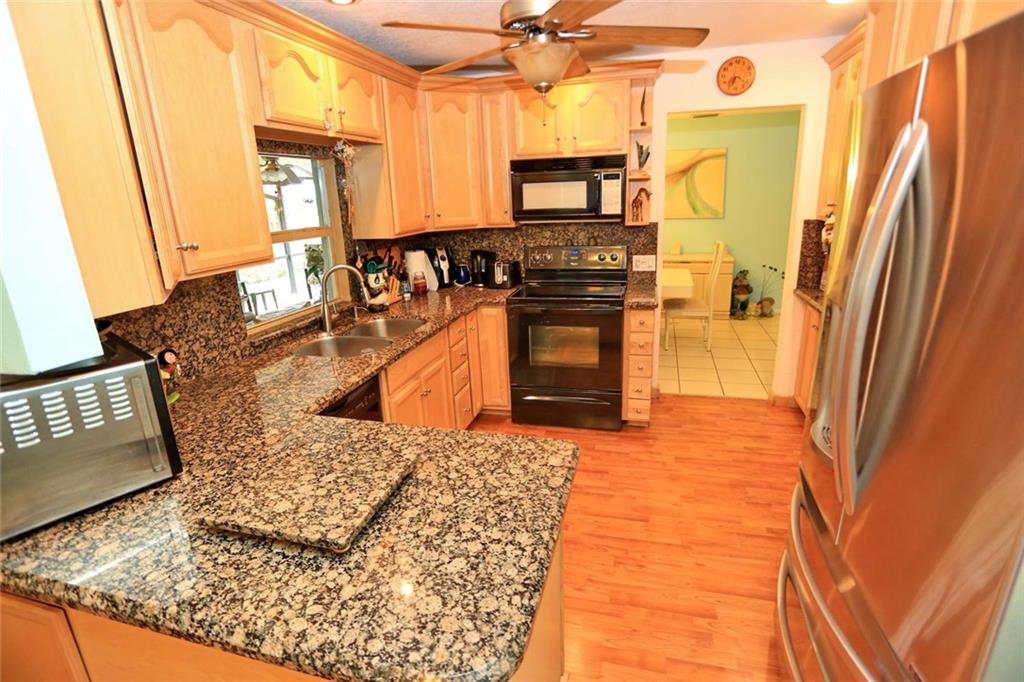 This beautiful 3/2 single story home w/a 1 car garage has been lovingly maintained by original owner. Spacious floorpan w/expanded family rm. Relax or entertain in the gorgeous outdoor covered/screened deck w/hot tub. Accordion Shutters in back/awnings in front. New AC, freshly painted exterior and main living interior areas. Updated kitchen cabinets w/pull-outs and granite countertops. Tile & laminate floors. Furniture & Grill negotiable. Refrigerator excluded in sale