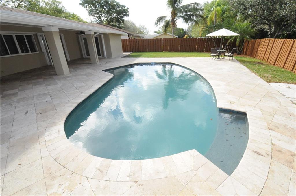 ROCK CREEK, COOPER CITY - 1 OF A KIND ON OVER 1/4 ACRE CORNER LOT; REMODELED 6 BEDROOMS/4 BATHS; POOL WITH MARBLE PAVERS ON HUGE PATIO & POOLSIDE; DESIGNER KITCHEN & BATHS; VAULTED CEILING WITH BEAMS; WET-BAR WITH WINE COOLER; 2 MASTER BEDROOMS; WALK-IN CLOSETS, 1 IS CEDAR LINED; PROPERTY PROTECTED BY ACCORDION SHUTTERS; NEW LANDSCAPE & SOD PLANTED & WATERED DAILY BY IRRIGATION SYSTEM; PRIVACY FENCE; BACKS UP TO VACANT LAND; 3 CAR GARAGE;ALL SCHOOLS A RATED; PRE-APPRAISED
