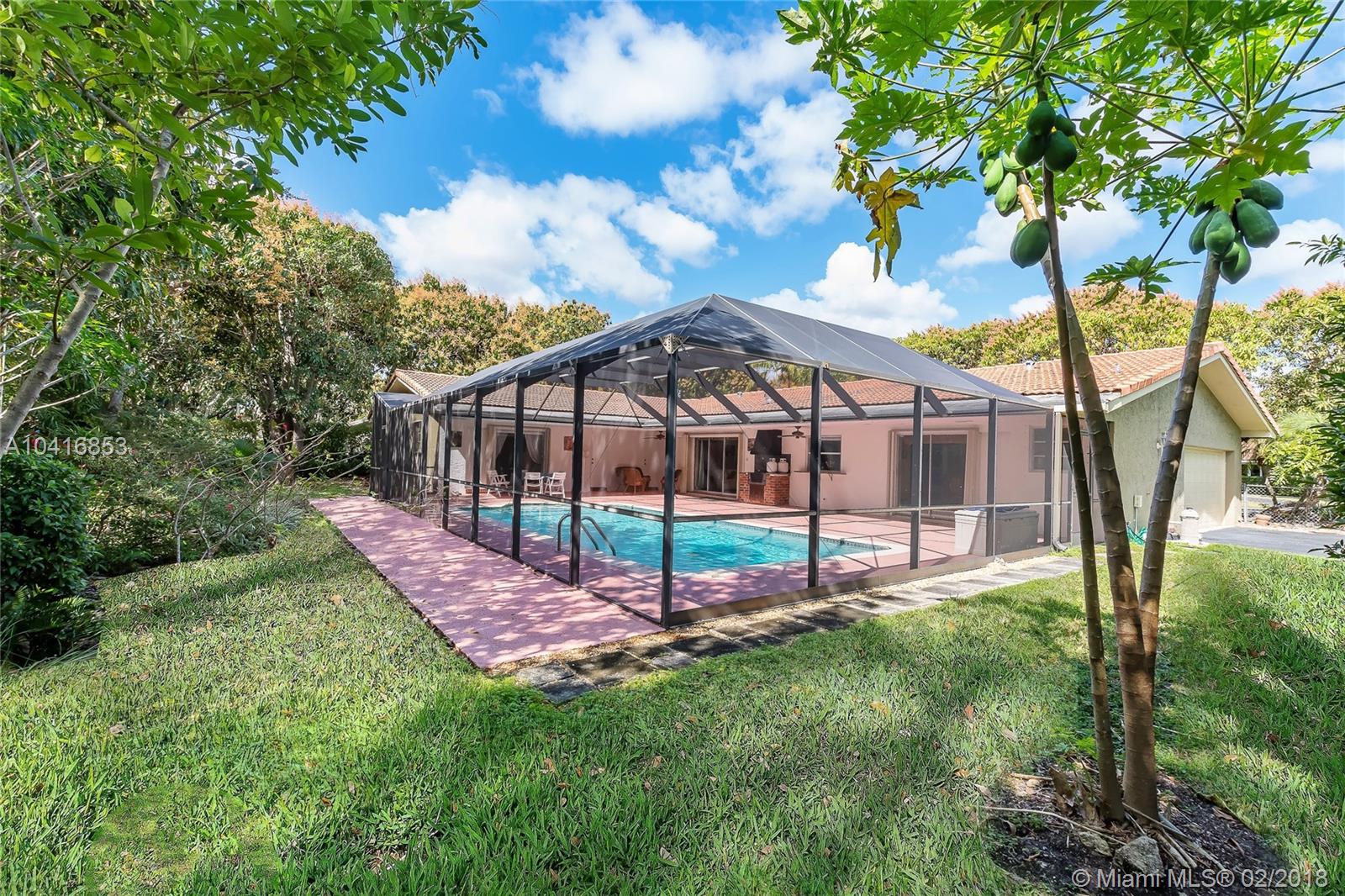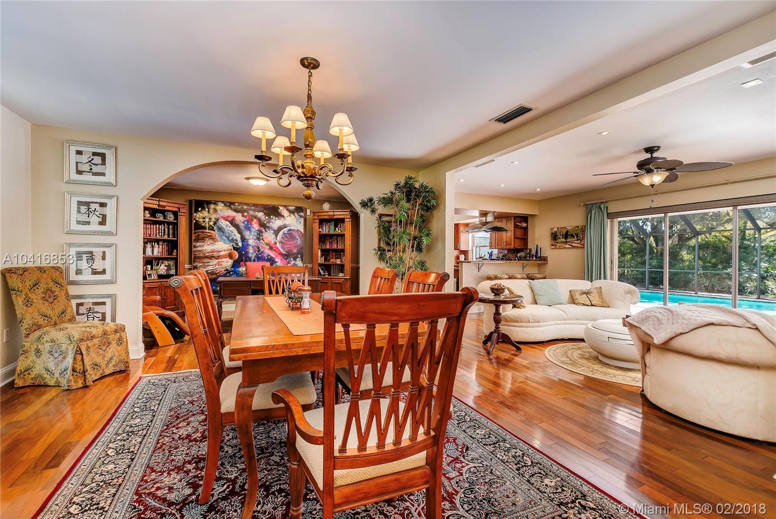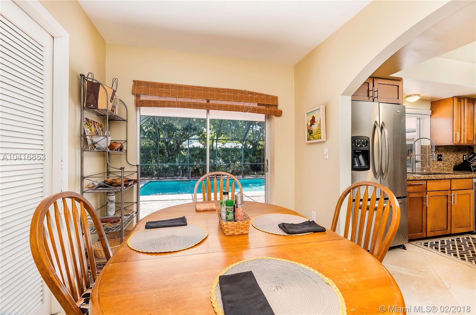 This spacious 5 bedroom, 3 bath, cul-de-sac home in Pinecrest has been meticulously maintained. The home features updated bathrooms, updated kitchen with stainless steel appliances, double oven, and granite countertops. Brazilian walnut wood and tile floors throughout, in-door laundry room with sink, breakfast nook, large family room, formal dining room, and den/office. Two car side load garage, large yard with mango, sapodilla, papaya, lychee trees. The serene backyard and screened in pool is perfect for entertaining all year round. Walking distance to top rated Pinecrest public schools. Close to restaurants, the New Whole Foods, shopping malls, and the Palmetto Expressway.