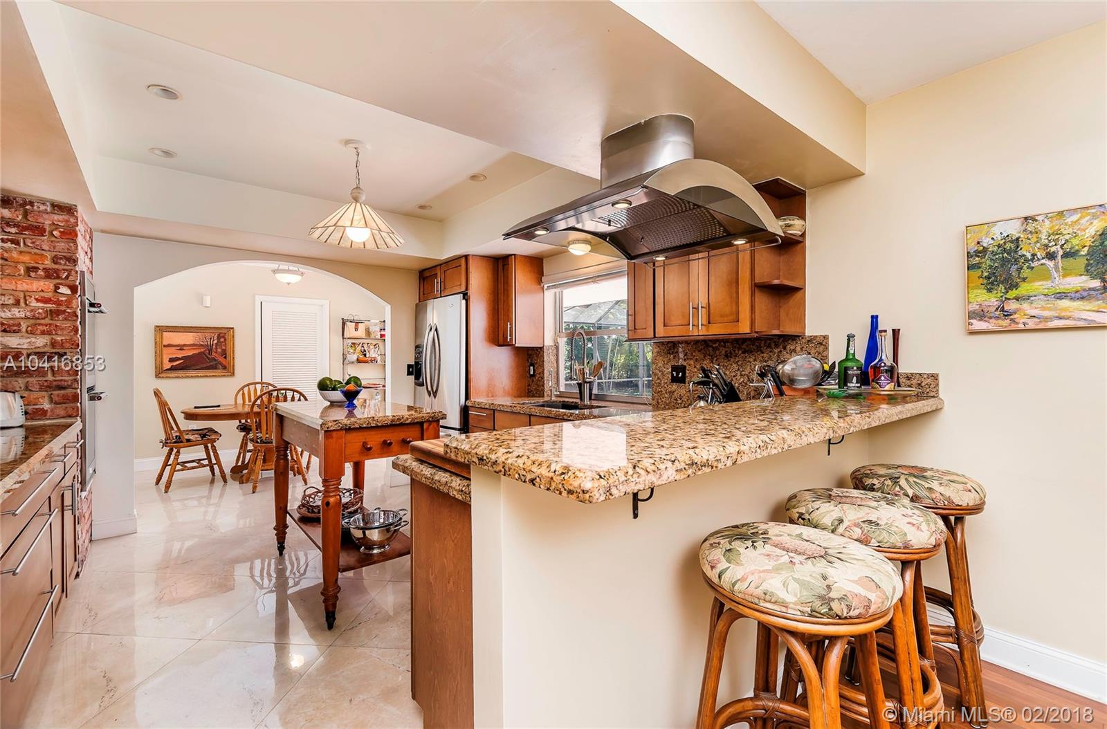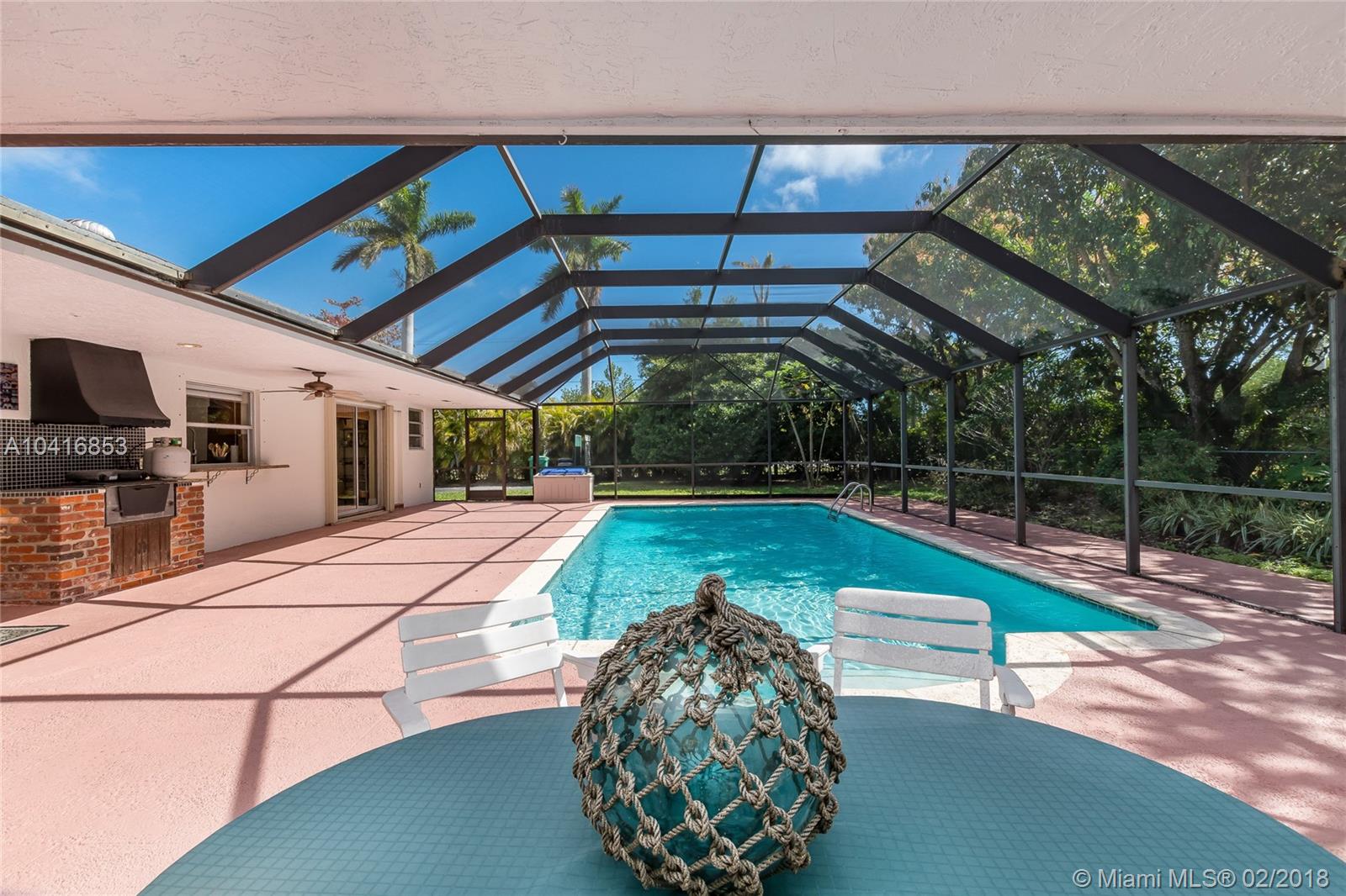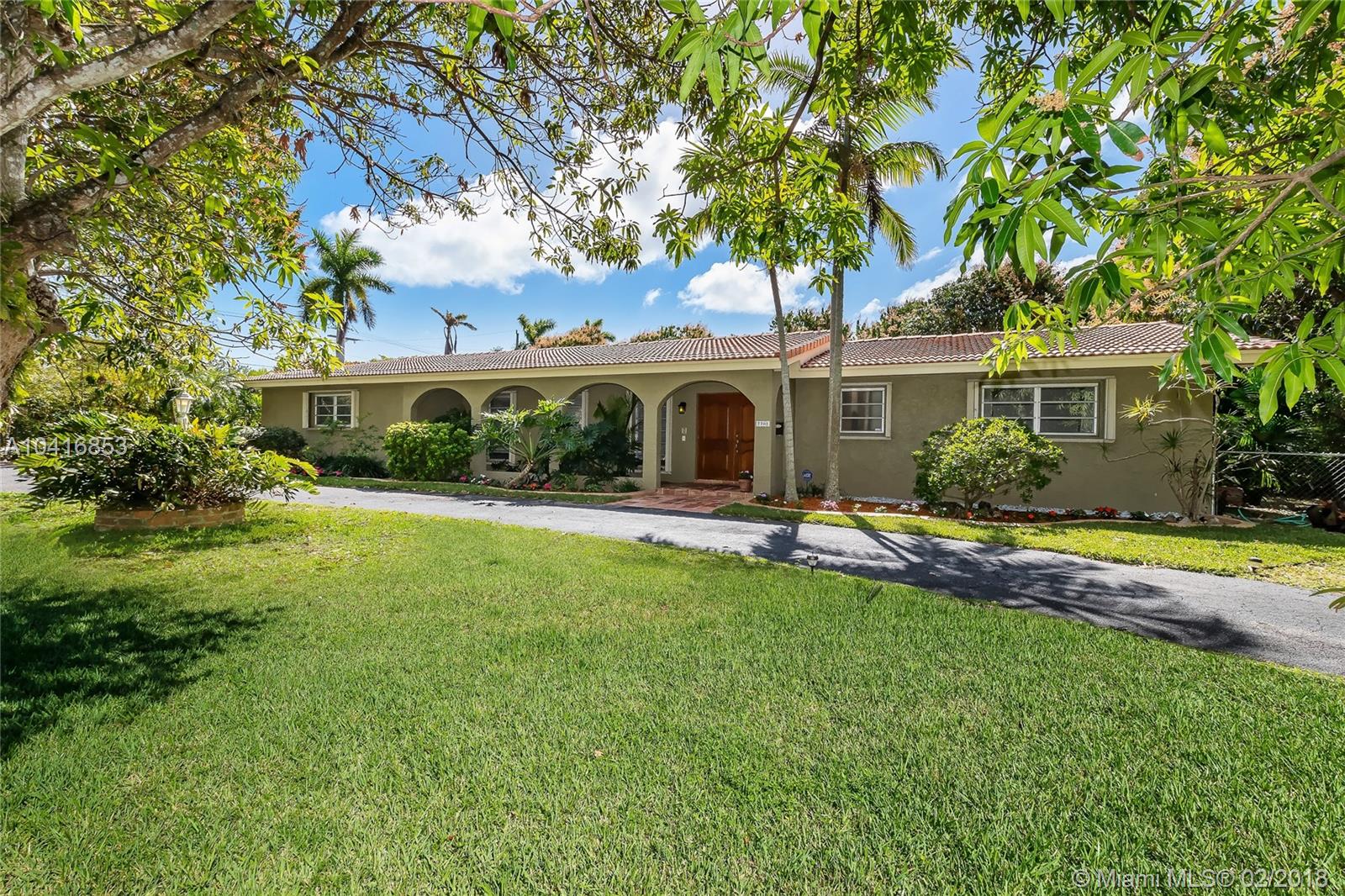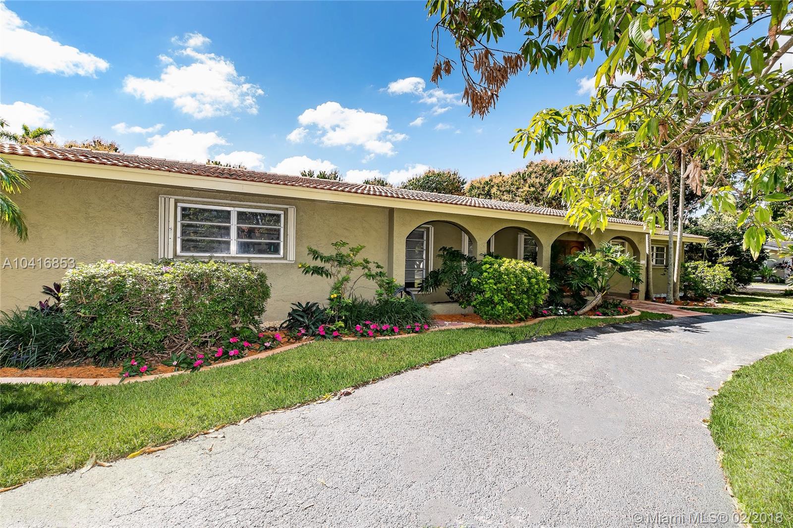 This spacious 5 bedroom, 3 bath, cul-de-sac home in Pinecrest has been meticulously maintained. The home features updated bathrooms, updated kitchen with stainless steel appliances, double oven, and granite countertops. Brazilian walnut wood and tile floors throughout, in-door laundry room with sink, breakfast nook, large family room, formal dining room, and den/office. Two car side load garage, large yard with mango, sapodilla, papaya, lychee trees. The serene backyard and screened in pool is perfect for entertaining all year round. Walking distance to top rated Pinecrest public schools. Close to restaurants, the New Whole Foods, shopping malls, and the Palmetto Expressway.