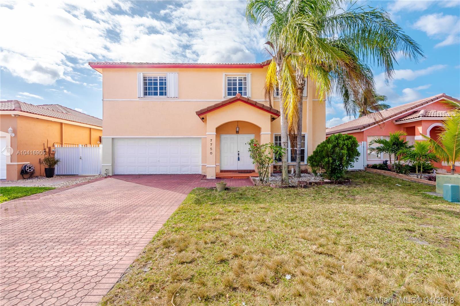 Great home located in desirable Spanish Lakes. Open floor plan, large kitchen with new granite counter top and new stainless steel appliances. New washer and dryer. Ceramic tile downstairs, newer wood flooring upstairs, intercom system, accordion shutters. Large master suite with sitting area and double walk-in closets. Large master bath with double sink.Good size bedrooms, upgraded 2nd. full bath. Fenced backyard. Premium location! Walking distance to schools, major highways, restaurants, shopping. Low association fee. Community pool. Must see!