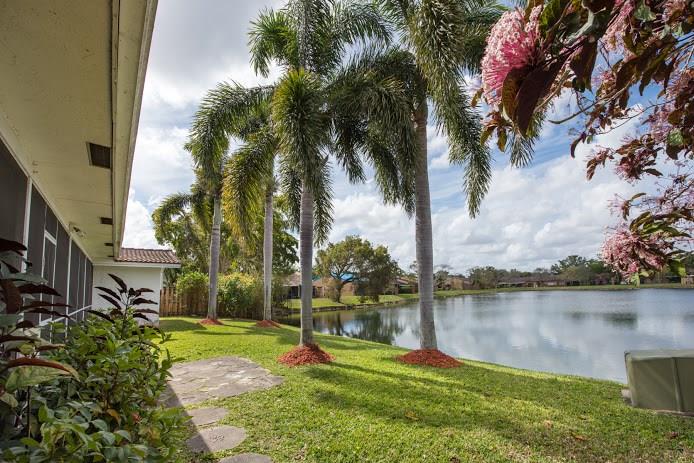 Open spacious 3/2 2 car garage home with breath taking wide lake water views. Fall in love with the peaceful private backyard with huge screened patio. roof 2004, ac 3yrs new, washer 3yrs new approx. New kitchen facet. open Light and Bright floor plan. split bedroom plan. Spacious kitchen with lots of cabinets and counter tops--true chef's delight. Tropically landscaped yard lots of palm trees. no home owners association.