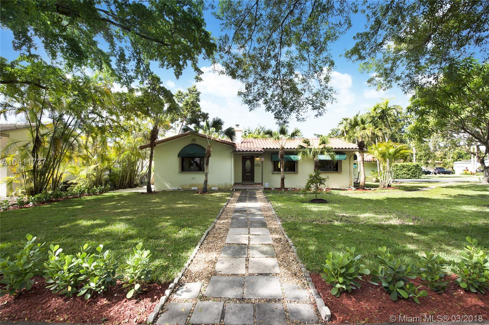 South Gables Location!! This home has 3 bedrooms and 2 baths with a 2 car garage on a large 12,500 SQ FT corner lot. The home features an updated kitchen, accordion shutters and a wonderful Family Room. There is a Spacious Patio and has a plentiful front & side yard. The Homeowner can keep As Is or Expand the property. It is Close to Merrick Park, Coconut Grove and has excellent schools. Live the treasured Coral Gables Lifestyle!!