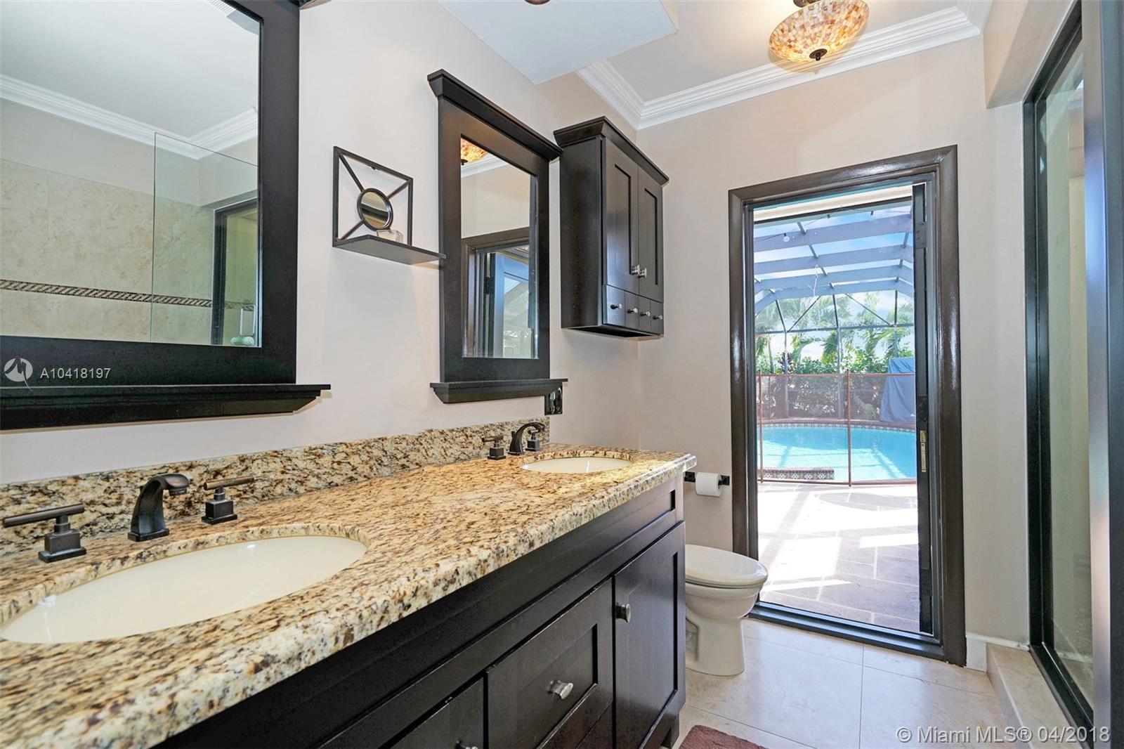 BOATING AND GOLF CART LUXURY LIFESTYLE ON THE CUL DE SAC! Built to entertain with custom kitchen that is truly one of a kind. Newly installed bronze Impact Windows,18 Speaker Surround System,8 security cameras,Screened pool & lanai , custom summer kitchen, built in TV’s,Bar, drop in grill/side burner, ice maker/fridge, Granite counter tops & SS Appliances both indoor/outdoor kitchen, and a solar heated salt water pool. Dark Brazilian wood & porcelain flooring,Crown molding thru out, large fish tank, New Electric service panels int/ext,Newer AC int/ext. .Extended deck, river rock columns,a 75ft seawall with 24ft dock ,abundant landscaping, golf cart storage.Open floor plan L shape configuration with water views to die for.