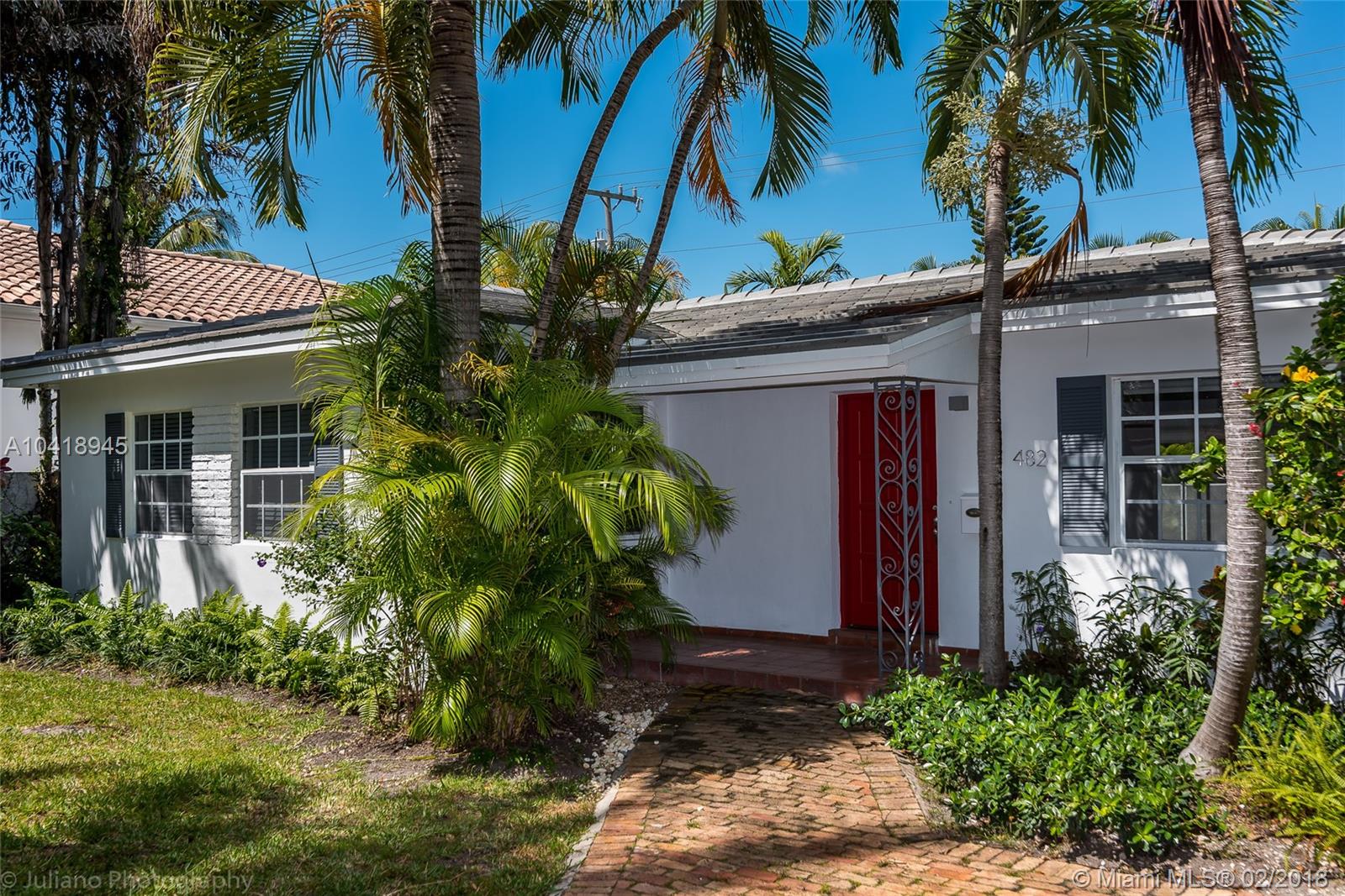 Charming home in Key Biscayne style with new roof and new air conditioners. Home is 2000 sq. ft. as per owner. Four bedroom home with Master bedroom on the right and 3 bedrooms on the left. Large pool, terrace, garden in front and in back. Already on sewer. Lot is larger than most. School is half a block away, the Park is nearby and Community ceter ver close. Rented at present until July 15, and there is a possibility that the renters want to stay longer. Sold "As Is" after inspections.