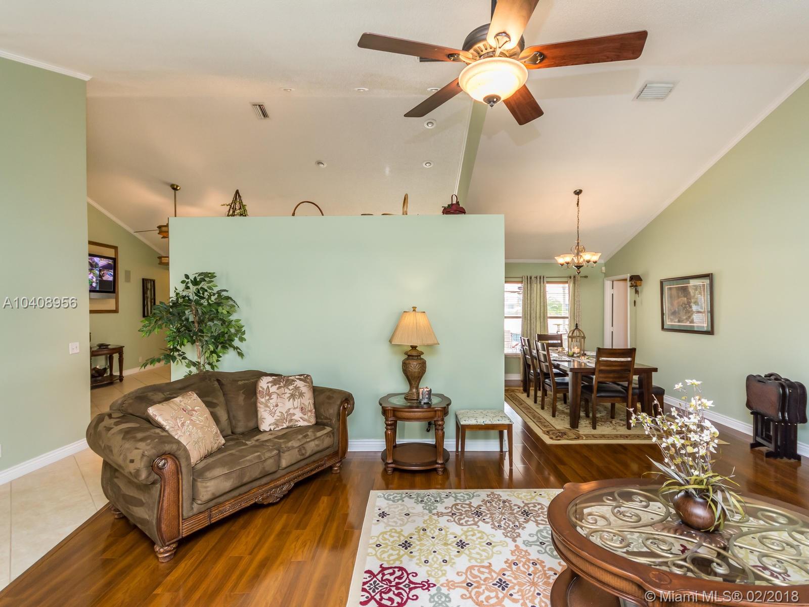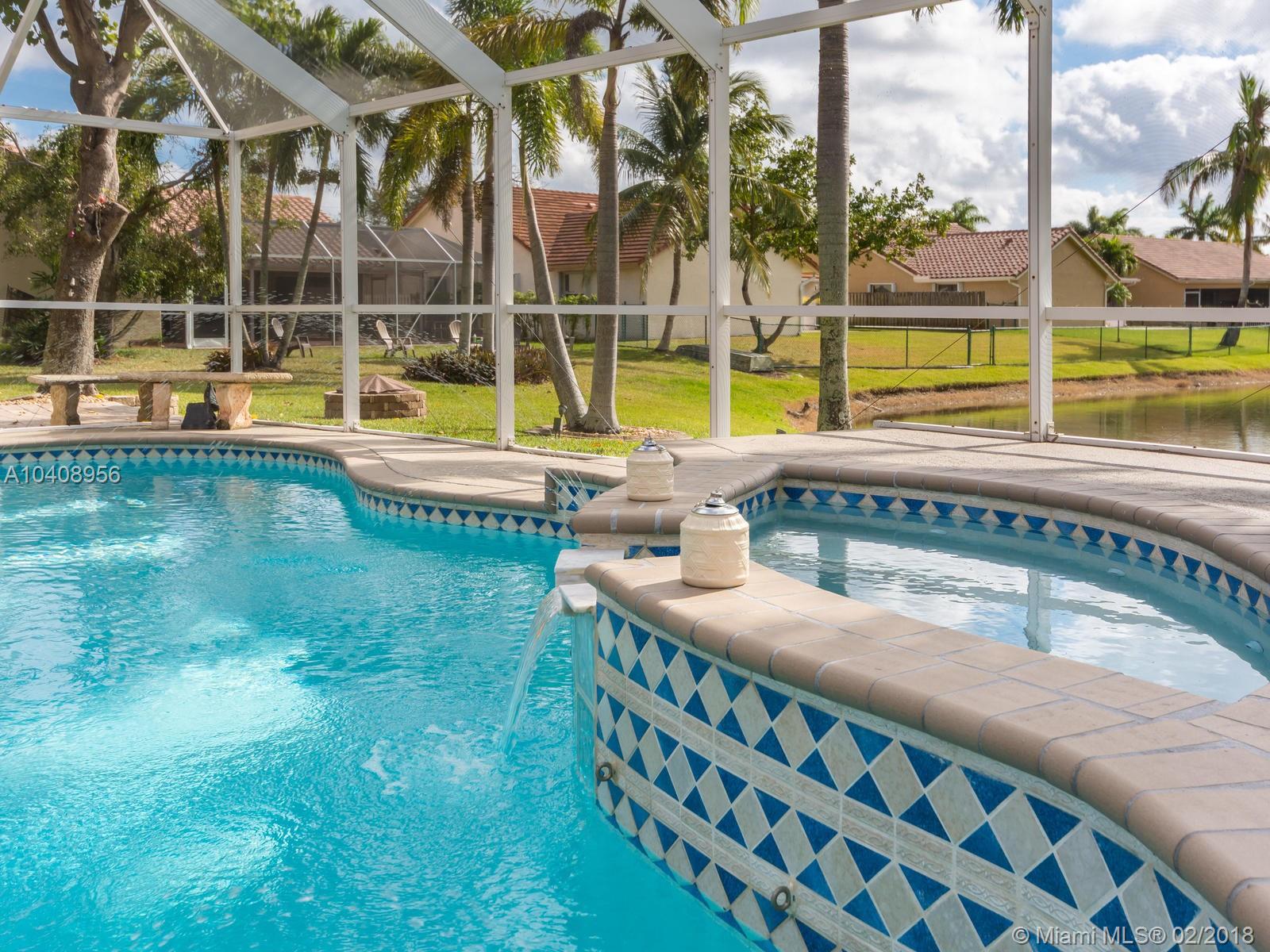 Amazing single family home in the heart of Pembroke Pines The Sapphire Model is one of the most sought after floor plans in Spring Valley. Kitchen has been upgraded with granite, new wood cabinets, matching Bar Stools & stainless steel appliances. Ceramic Tile and Pergo floors throughout. Formal Dinning Rm. Living Rm. & Family Rm. with Crown Molding Separate Washer/Dryer Laundry Rm with plenty of built in storage cabinets. Covered patio with screened in Salt Water Heated pool & spa overlooking the lake with large back yard and Fire Pit. Home has a Lorex Security Surveillance system with a 50” Plasma TV, 8 Cameras & Ring Door Bell. 2 car garage with extra wide driveway. Hurricane panels for all windows. Home has been very well maintained by owner and is in excellent move in condition.