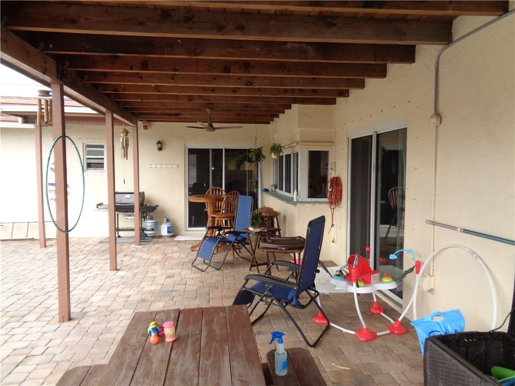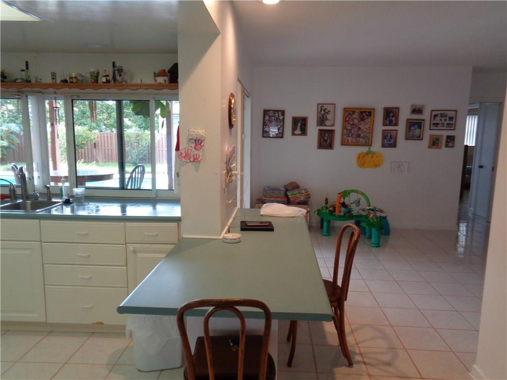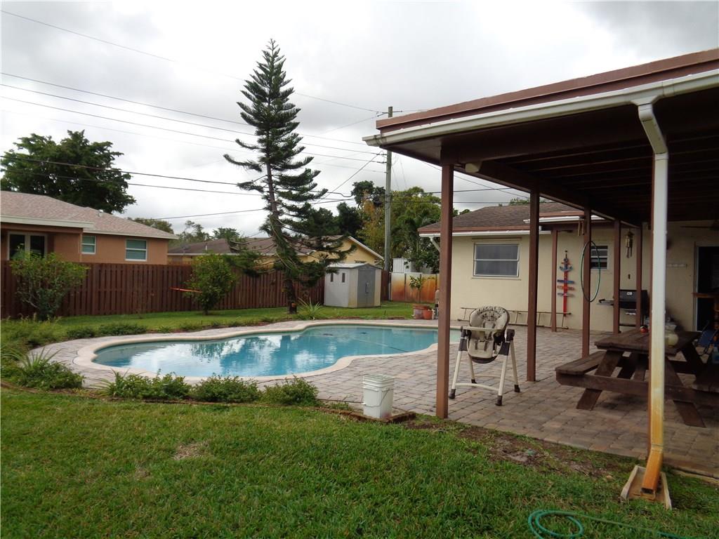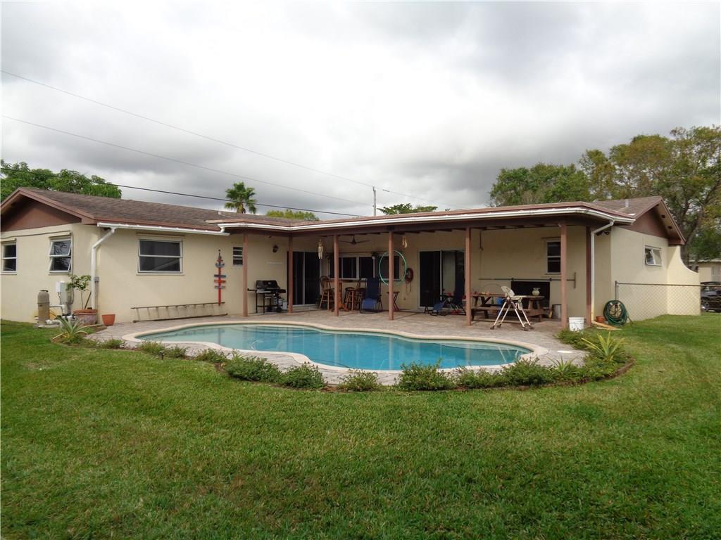 Plantation Park pool home. 3/2 split bedroom plan. Large living room, family room, dining room, eat in kitchen with built in breakfast area. Pass thru from kitchen to covered patio. Large yard with covered patio area and paver deck around sparkling pool. Walk to all level schools. Very convenient. Popular floor plan. Guest rooms close off from family room with a pocket door. Lots of space here. Tile & laminate floors throughout. Fenced yard. Quiet cul de sac street.