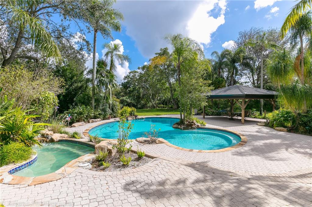 Custom built estate home on 1.17 acres! Private tropical paradise with large pool, gazebo, expansive paver patio. Home features 2 master suites, plus nanny suite. All secondary bedrooms have on-suite baths & walk in closets. Large family room w/ vaulted ceilings & wood burning fireplace, oversized open concept kitchen w/ SubZero refrigerator & freezer, an entertainers delight! Brand new roof in 2015, new 4 zone A/C 2014. Travertine floors, 2 laundry/utility rooms & Sauna. 3 car garage & circular drive.