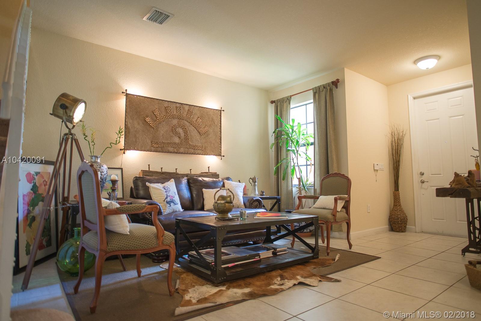 Great Opportunity to own this Townhouse 3 Bed/2.5 Baths. Functional floor plan with formal living & dining room. Nice Kitchen overlooking family room, Wood-Finish Cabinets,Stainless Steel Appliances, Granite Countertops with breakfast area bar. The Family Room also gives access to an outdoor Patio. The 2nd floor includes a Laundry Room, 2 Bedrooms both with access to a full bath with vanity and tub, Master Suite, with a walk-in closet, master bath with dual sinks, marble countertop, vanity, and glass enclosed shower. Walking distance to community pool and mail boxes area. No Neighbors on the back. Excellent location. Close to great schools, mayor highways, and Doral Legacy Park in which you can gather to enjoy sports, cultural arts. Current owner will move one month after closing.