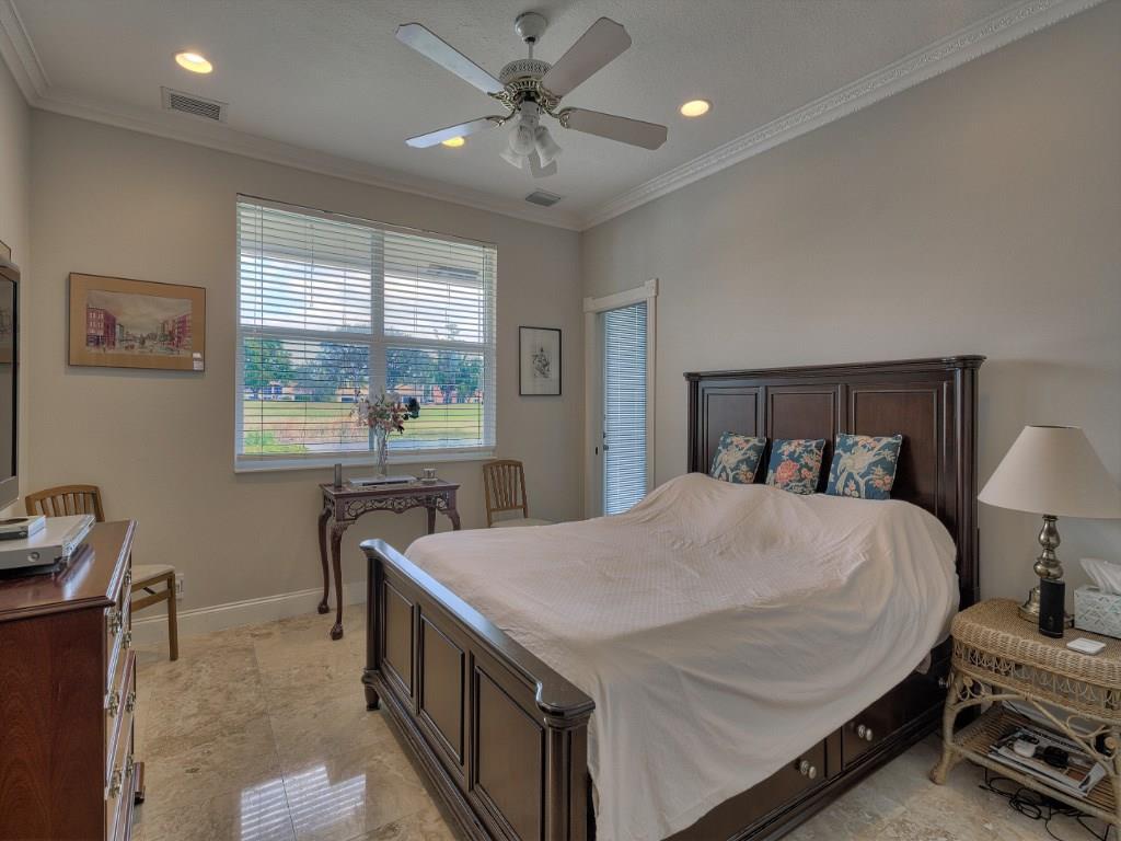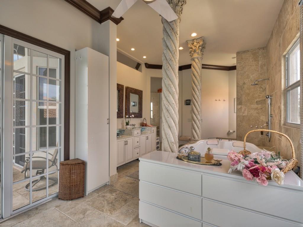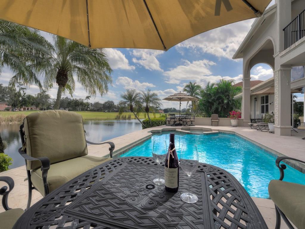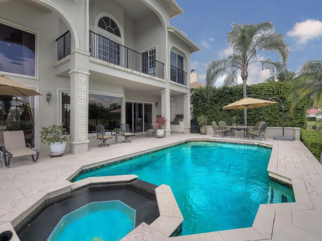 Just Re-Priced! Exceptional 2 story custom home, quiet cul-de-sac Eagle Trace. 5 Bedroom, 4 Bath, Office (can be 6th Bedroom) Stunning Lake & rolling Golf Course views. Spacious outdoor marble patio, summer kitchen. Impact windows, custom trim, marble & wood flooring. Gourmet Kitchen Lg. center island, Granite counters, SS appliances, Sub-Zero, 6 burner gas Dacor Stove, Central Vac. Master suite w/sitting area, balcony overlooking pool, water and golf course, large master bath. Tennis& Basketball courts.
