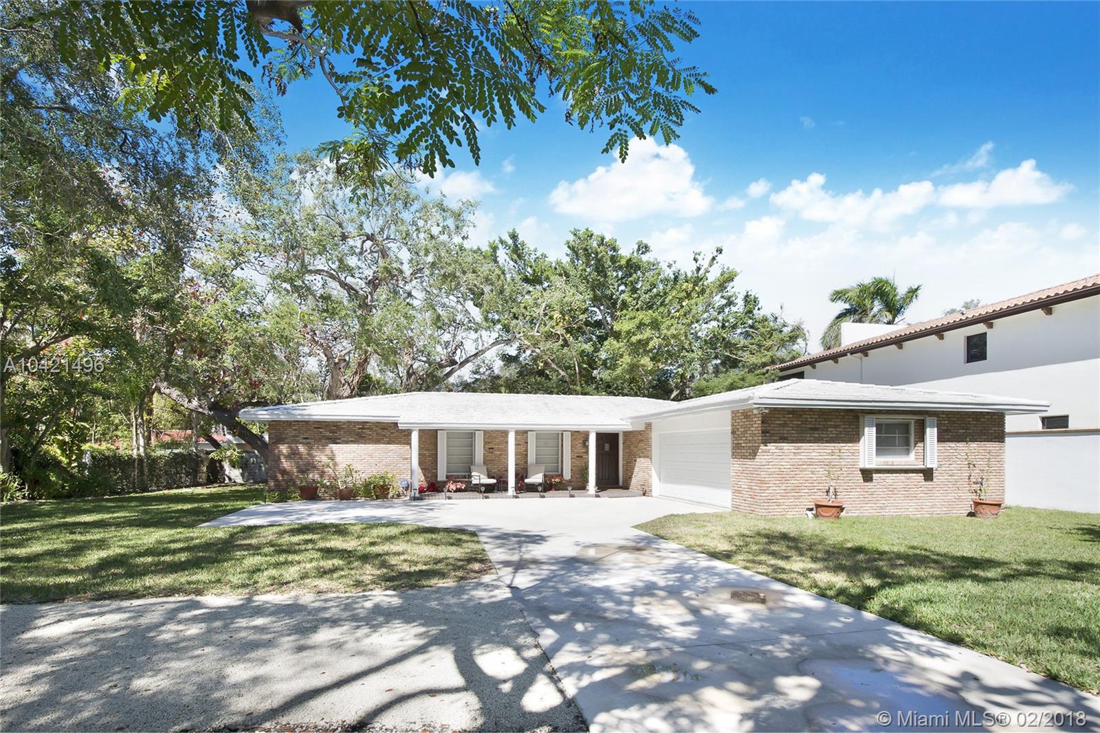 Prime North Grove location. Oversized lot nestled under mature Oak trees surrounding the exterior perimeter. Partially updated and plenty of room for a pool and expansion. A very nice split floor plan with 2 bedrooms and one bathroom on one side and the master suite on the other. The kitchen is located in the center of the home with the living and family room on either side. Plenty of parking outside or in your large two car garage. Bike or walk to parks and downtown Coconut Grove.