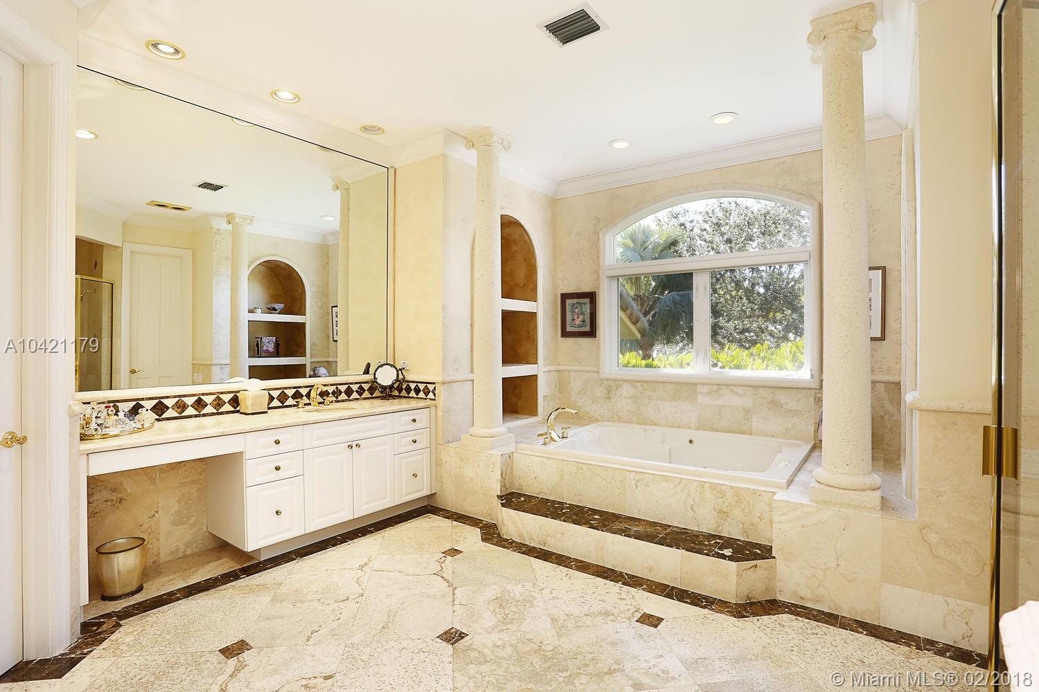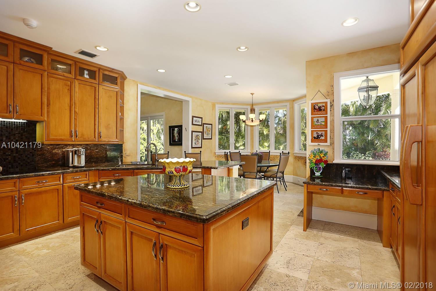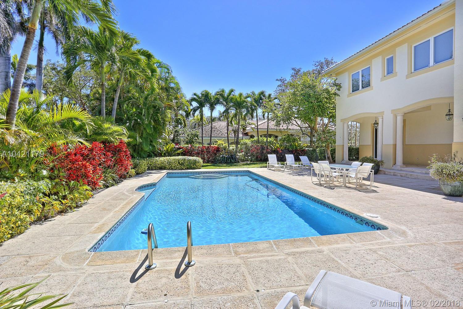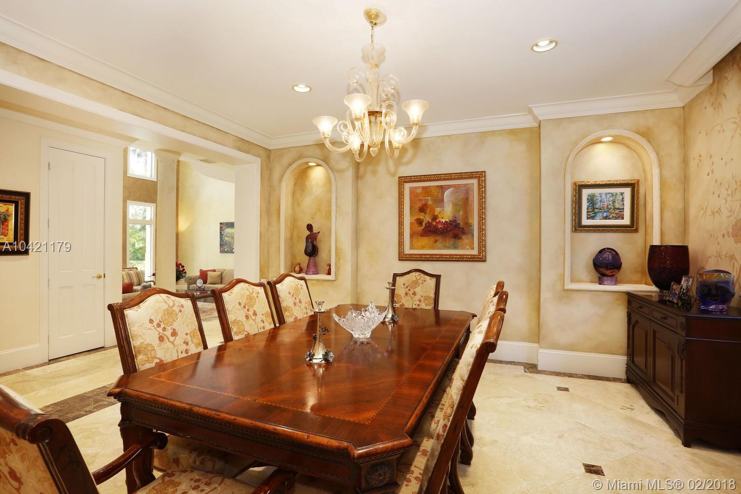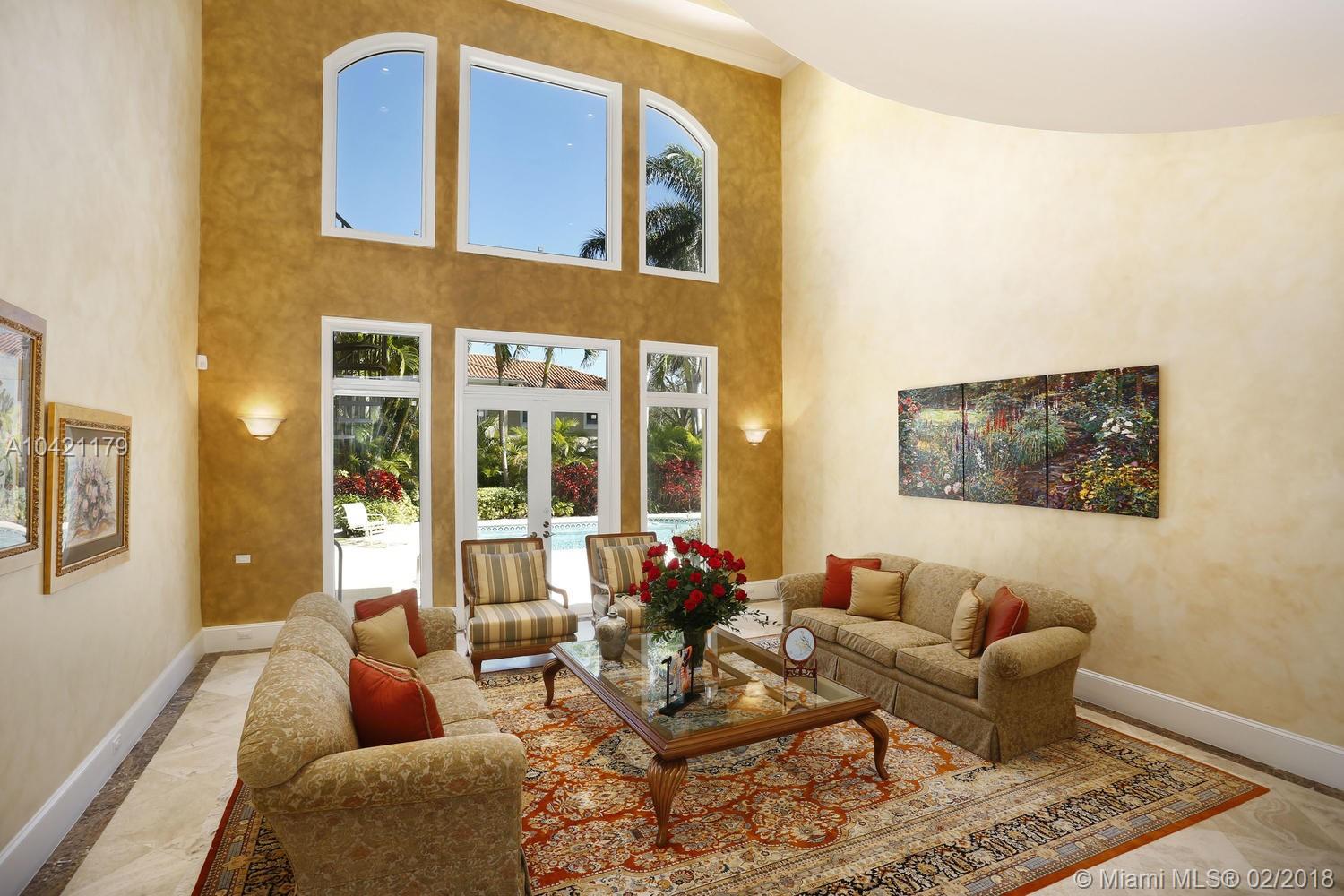 Stately and spectacular custom home in exclusive gated enclave of 15 homes with tennis court! On quiet and beautiful cul-de-sac. Elegant and exquisite. Updated with style and quality. Grand foyer entry, Double height formal living!Gracious diningroom. Gourmet cook's kitchen and breakfast area open to fabulous family room. High impact glass and doors. Marble floors throughout. Guest suite and library/office. Lavish master suite with sumptuous bath. All en-suite bedrooms with open vistas! Custom built-ins.Natural light beams on this home sweet home with tasteful decor and luxurious comforts. Professionally landscaped back garden. Open inviting heated pool/patio. lovingly cared for and polished to perfection! Lots of extras incl.45 kw generator. Just gorgeous! Excellent pinecrest schools!
