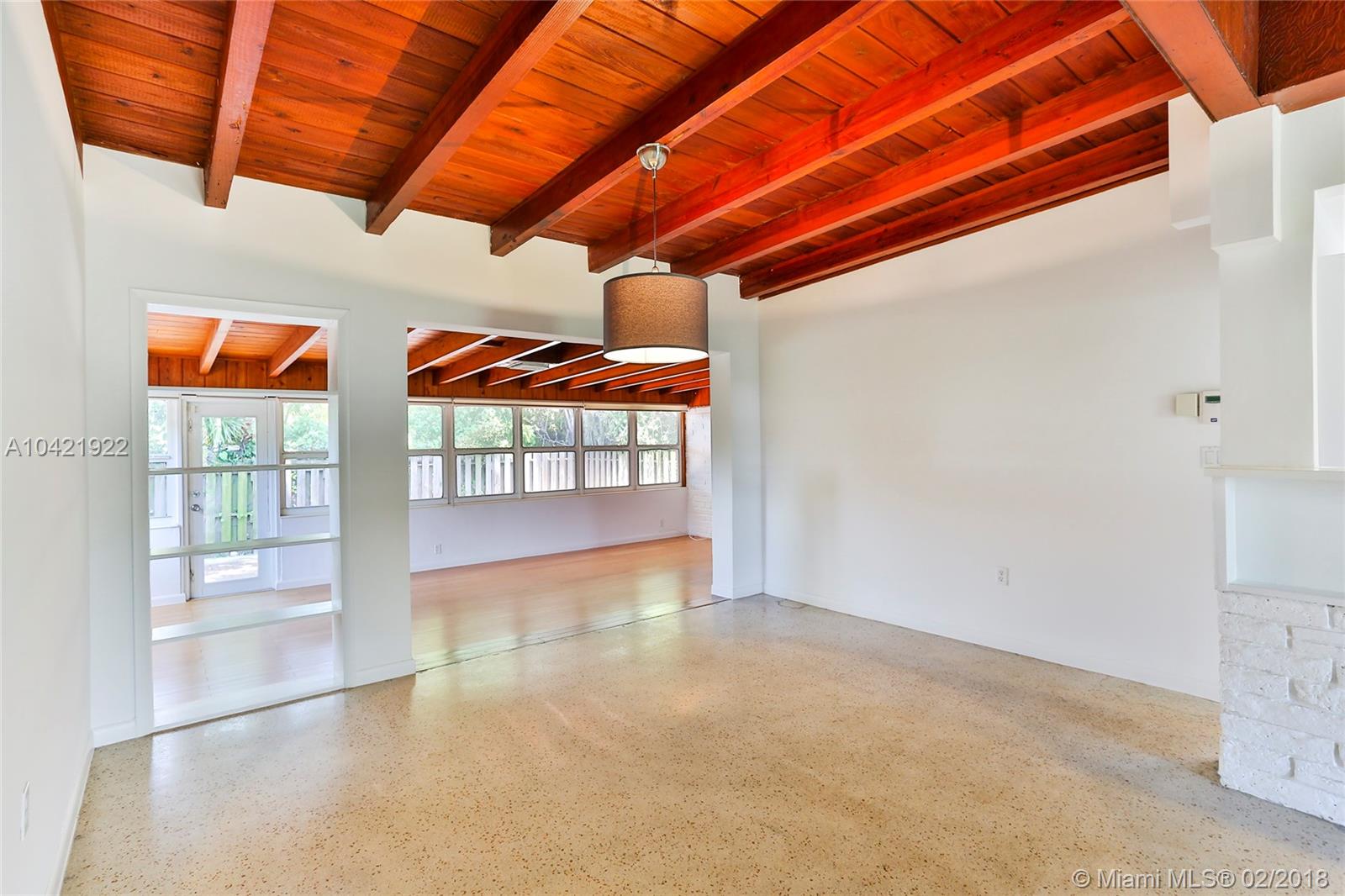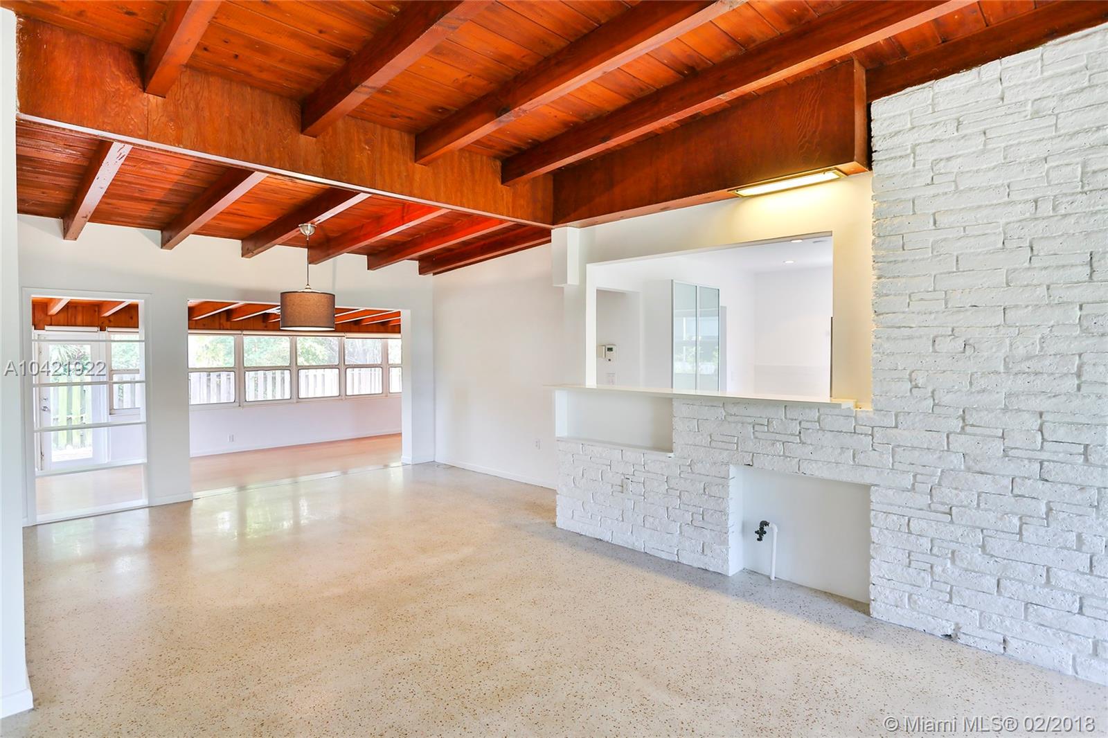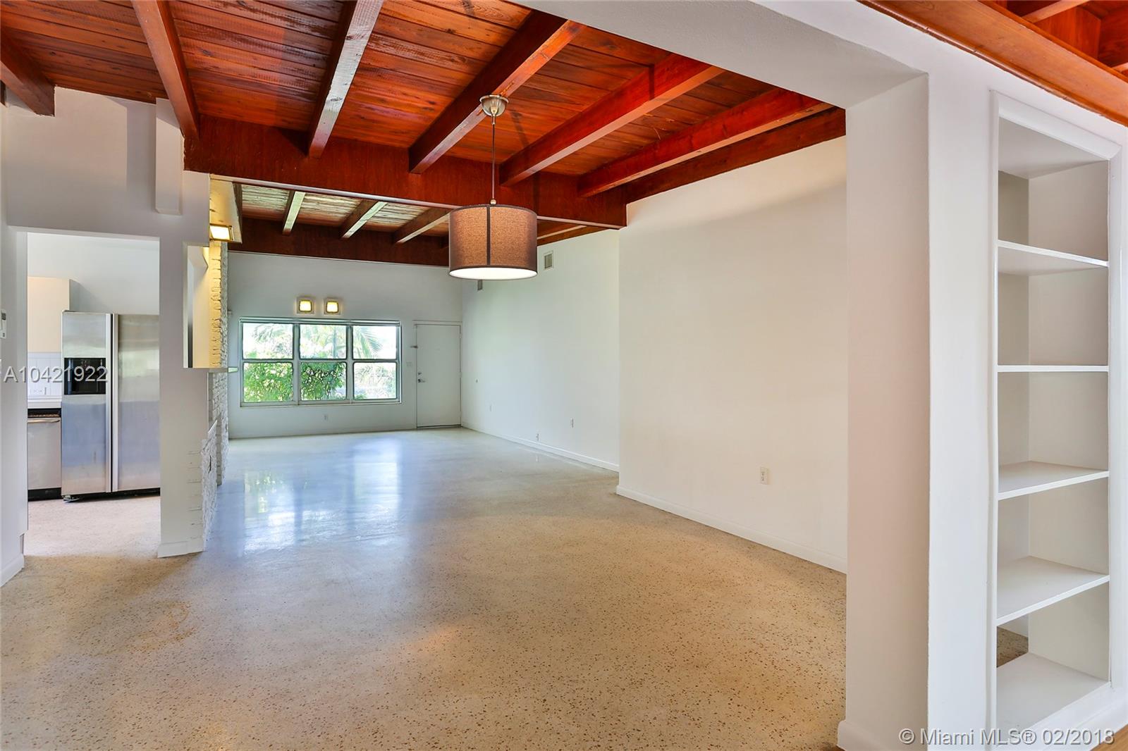 Beautiful, modern home with a spacious, open floor plan and terrazzo floors throughout. Split floor plan with 3 bedrooms, 3 full bathrooms, an office, and a 1-car garage. High wood beamed ceilings and a decorative fire place add to the charm of this comfortable home. A combination living and dining area leads to a large family room at the back of the house, which opens out to the deck in the private, fenced backyard with shade trees and tropical landscaping. Walk to the beach, shopping, community center/pool, Bal Harbor Shops, Four Seasons Surf Club. Zoned for A rated Bay Harbor Schools. Call today!