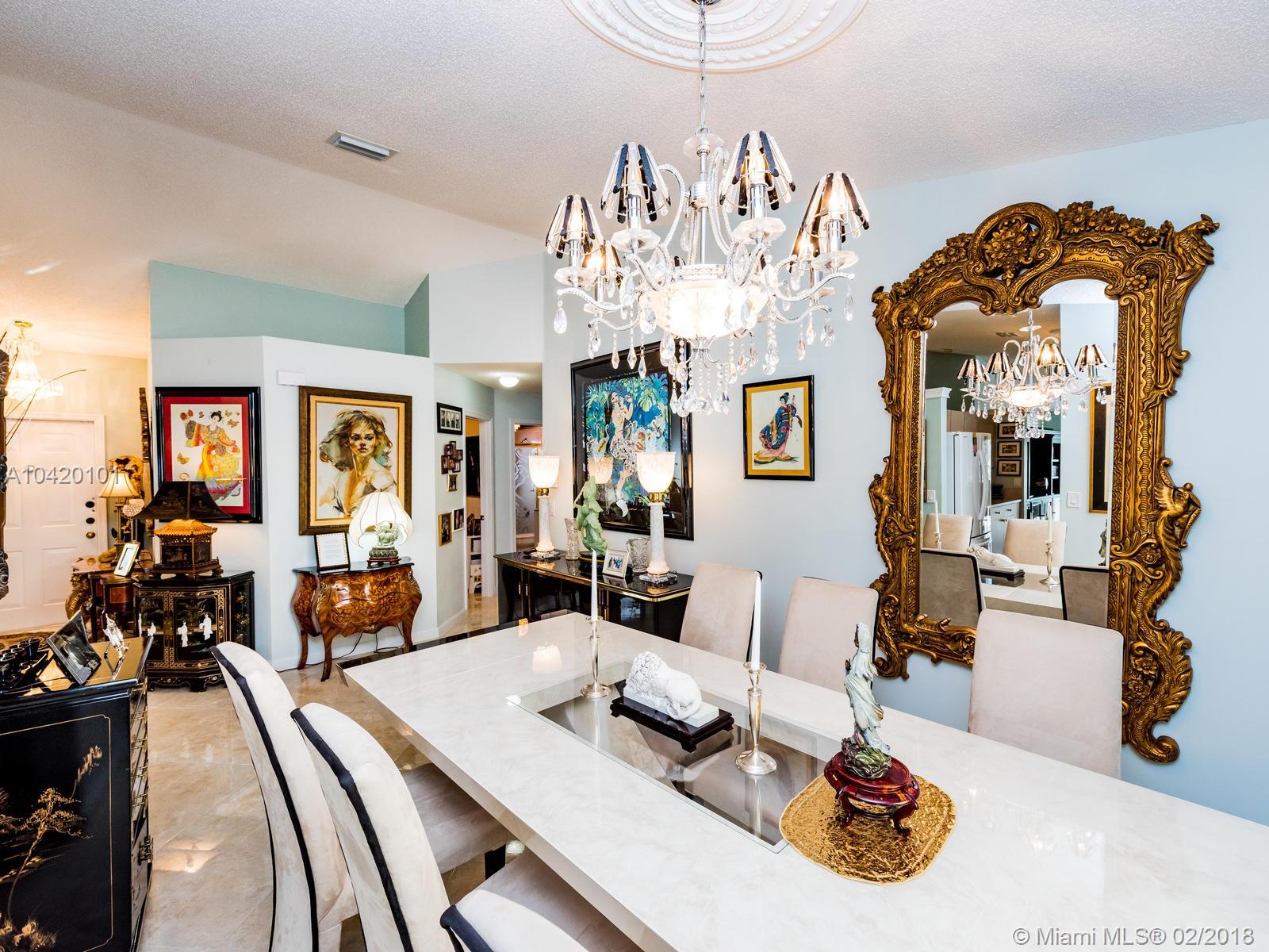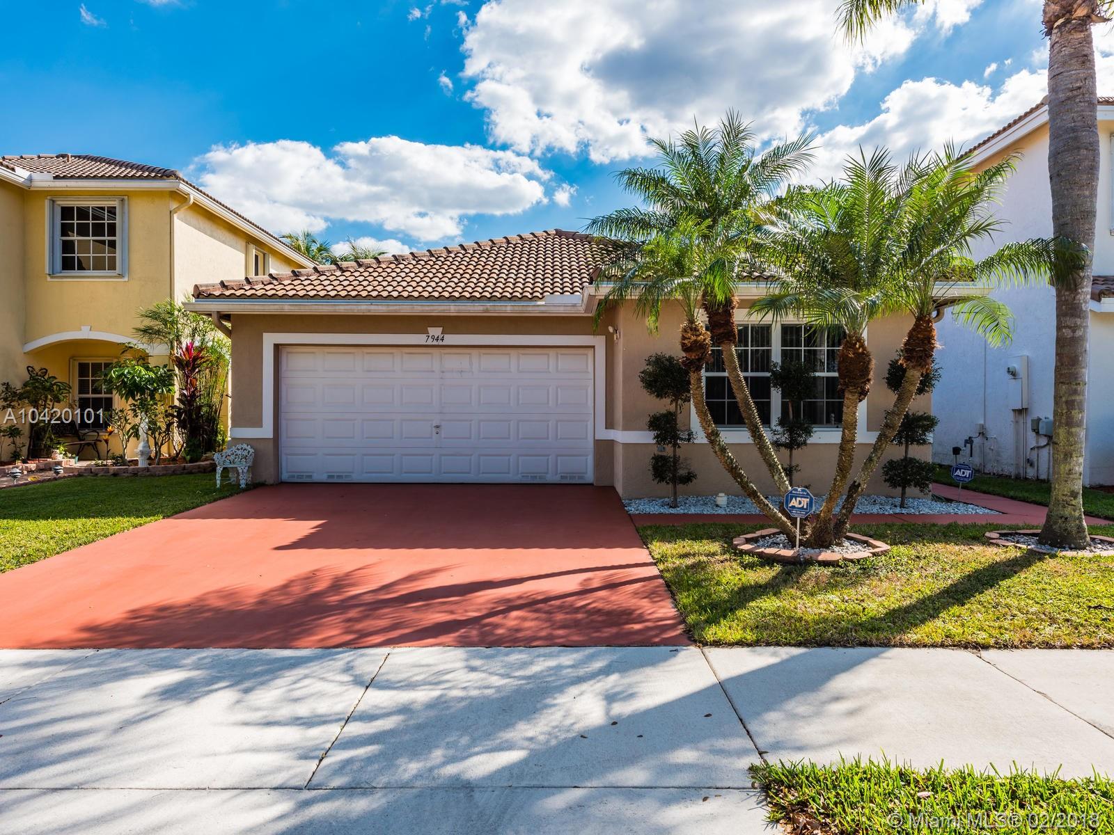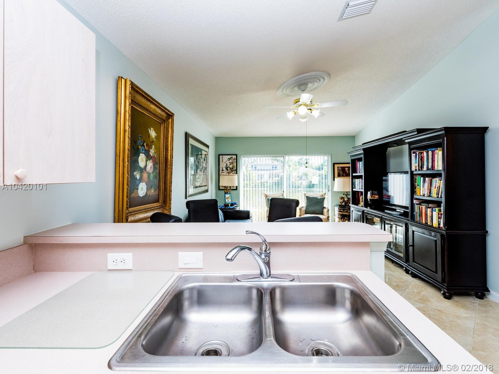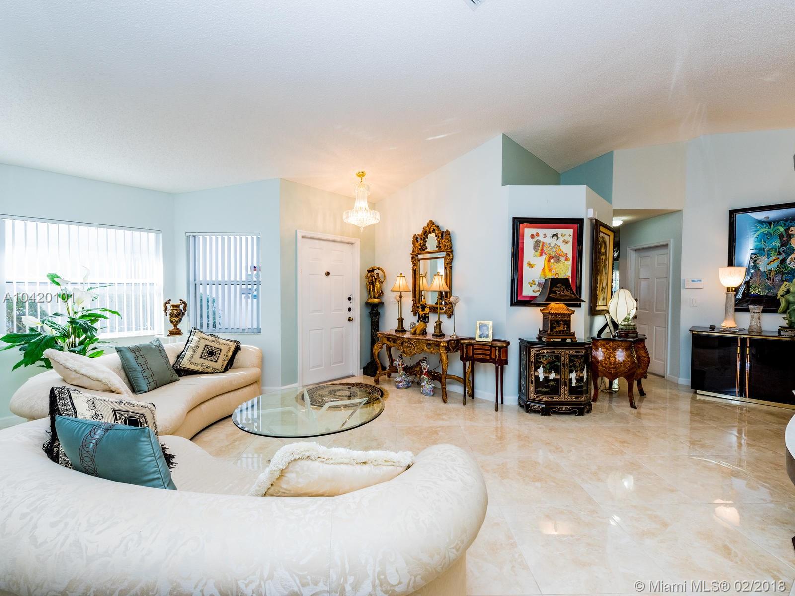 Beautiful single story waterfront home in Stirling Meadows, Davie. 3/2 with gorgeous floors, impeccably maintained. Custom trim in the bathrooms with one bedroom currently a walk-in closet with custom shelves, easily converted back. Fabulous location. Community Pool, close to major roadways, shopping, etc. Great storage space with a 2 car garage. Removable ramp at the entryway.