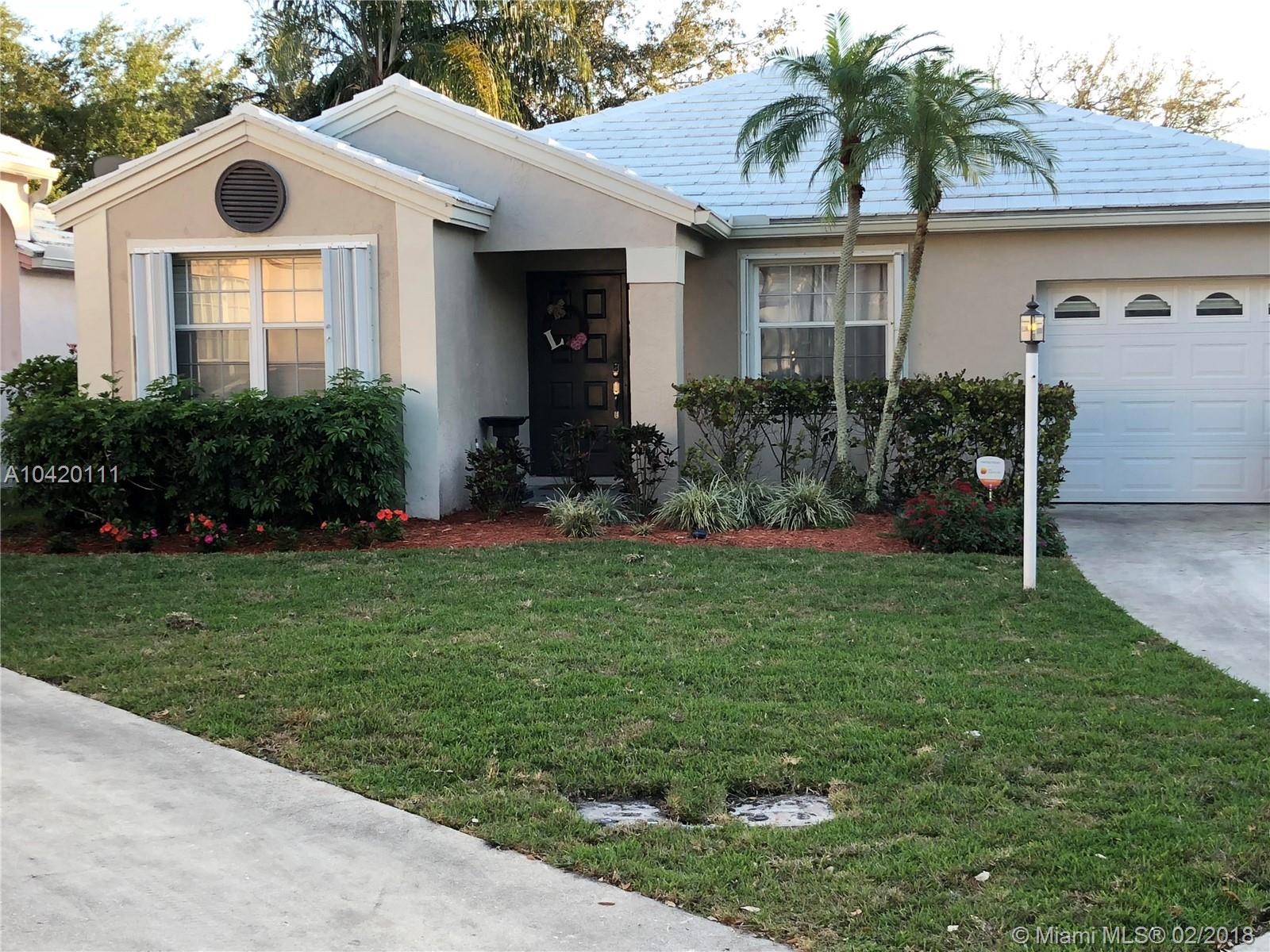 Beautiful, move in ready, 1517 Square Foot home is situated on a cul-de-sac in the highly desirable gated community, Jacaranda Pointe. This home offers a very open floor plan with tile floors throughout, 2 spacious bedrooms and 2 updated bathrooms. The kitchen was completely remodeled in 2016 with gorgeous quartz counter tops and incredible cabinetry with ample storage. The exterior features accordion shutters, an over sized one car garage, screened in patio and a fenced in backyard. Alarm system complete with 3 cameras. Jacaranda Pointe is located in the heart of Plantation and has a wonderful community pool. Close to Central Park, Grocery Stores, Great Restaurants, and world class shopping at Sawgrass mills mall.