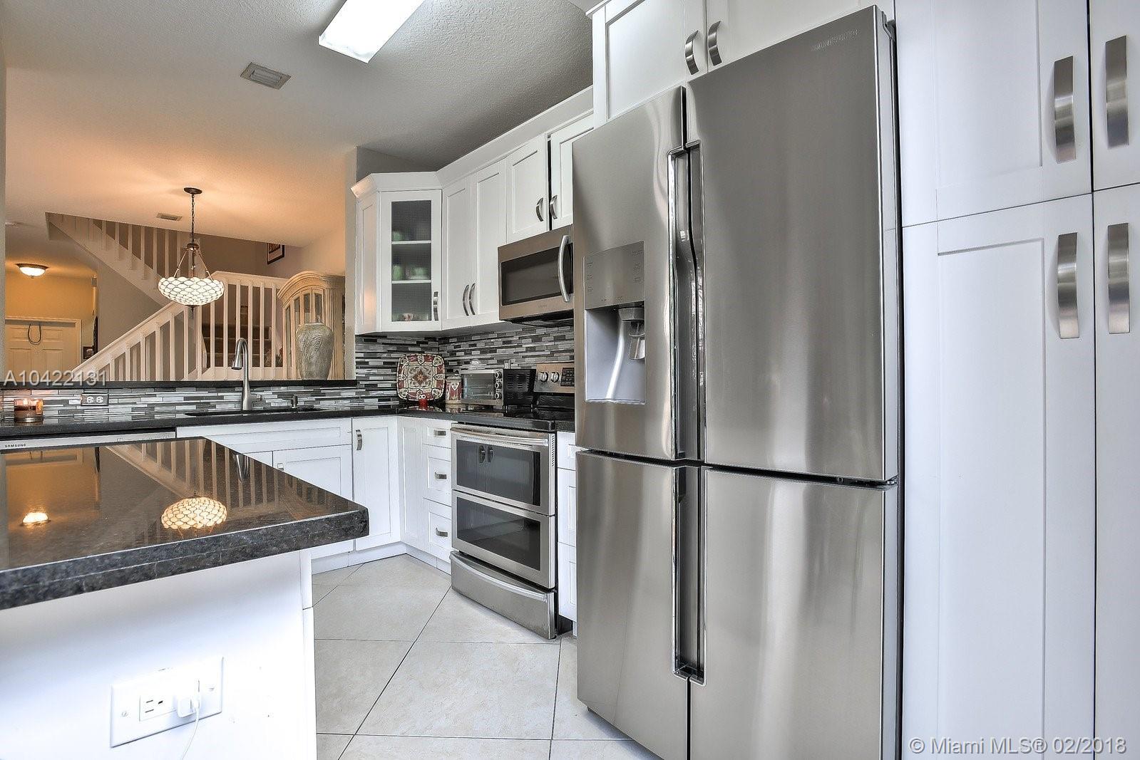 Immaculate 2 story contemporary townhome in a gated community with pools and just few minutes from Sawgrass Mills mall and one block from 2 city parks .Features beautifully tiled first floor and new carpet on second ; renovated kitchen with stainless steal Samsung appliances .. Bright kitchen and sunny family room . One car garage and plenty driveway parking space.