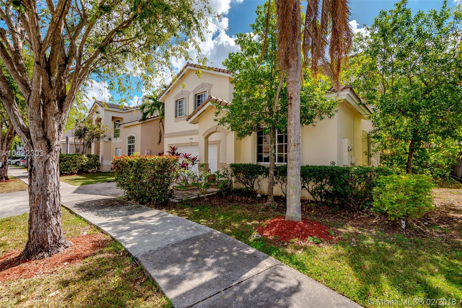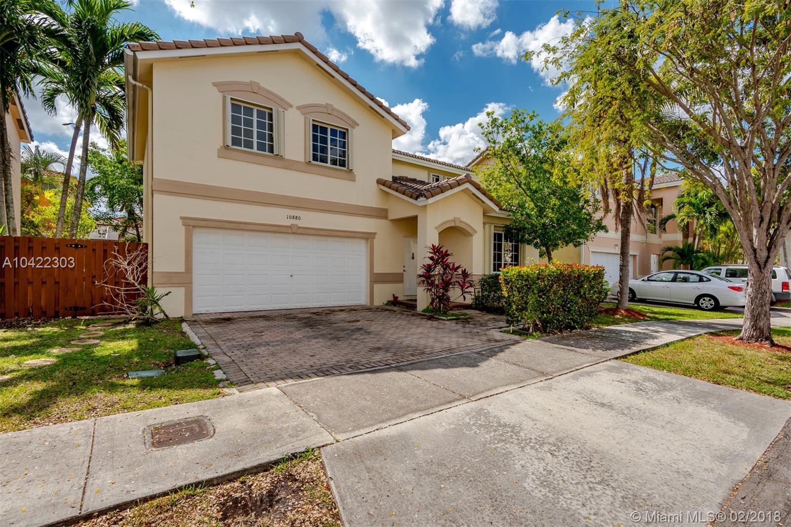Exceptional two story home in gated community of Doral Gardens. Attractively priced 4 bedrooms, 2 and a half bathrooms. Low Association, includes cable, internet, landscaping & gated security. Ideal for entertaining guests with two car garage and backyard. Excellent location within proximity two A+ schools, restaurants, golf course and shopping.