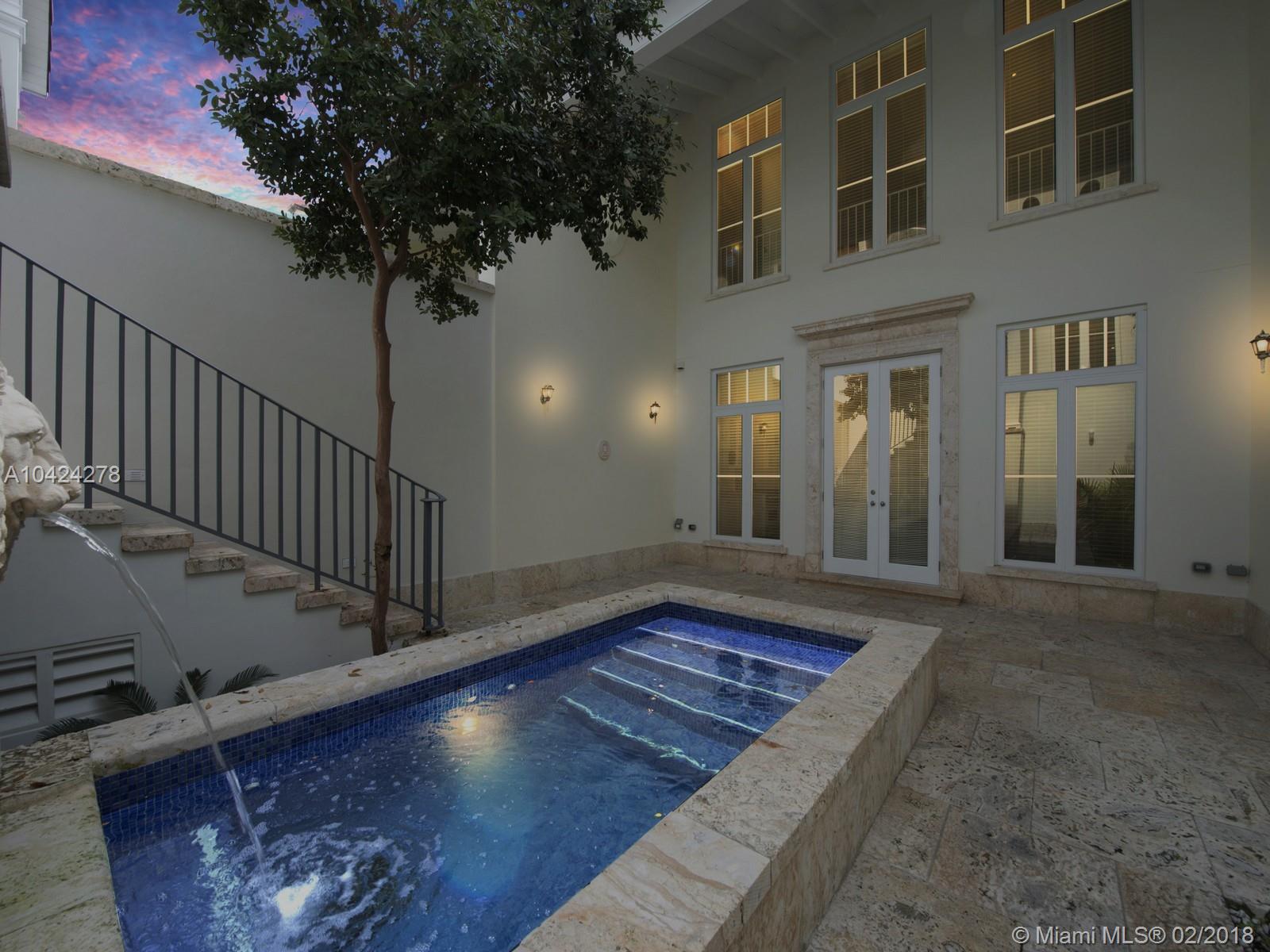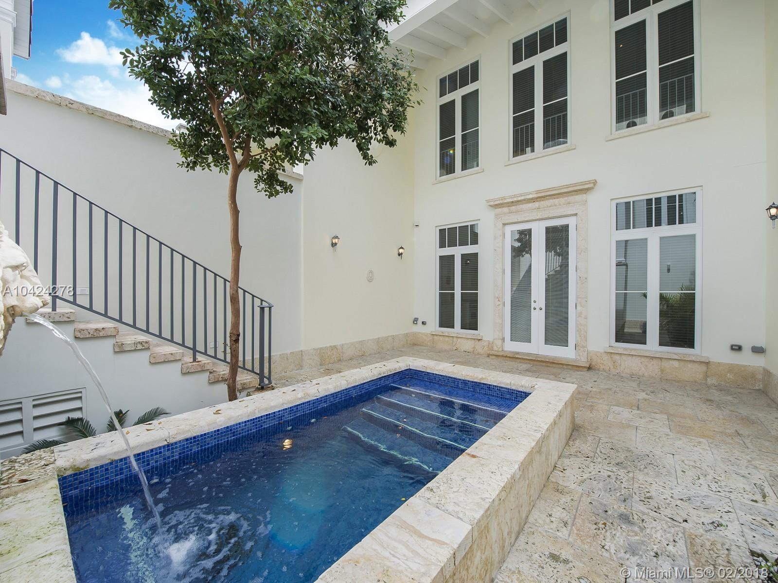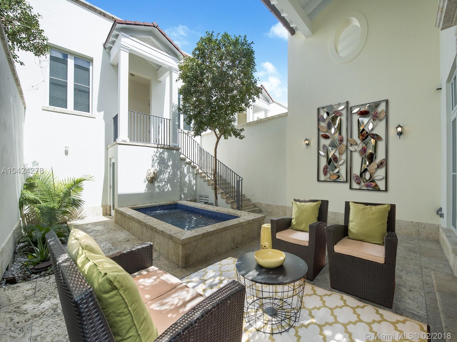 Almeria Row’s Phase 1, number 647, is newly available for purchase. This luminous residence enjoys an elevator, a sweeping staircase, 11 and 17 foot ceilings, marble floors, impact windows/doors, skylight and a rear access 2-car garage. Its magical, walled-in courtyard features a European Bath Pool and fountain; a wonderful space for dining al fresco while enjoying the sights and sounds of trickling water. Almeria Row, a collective set of 10 luxury townhomes, has garnered architectural awards and accolades and has also been featured in magazines and commercials. The floor plan consists of a 2/2.5 main house plus a 2/2 beyond the courtyard and above the garage. It’s a sweet location especially for those yearning to be able to walk to restaurants, shoppes, parks and the golf course.