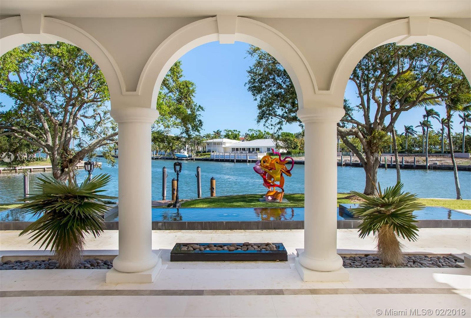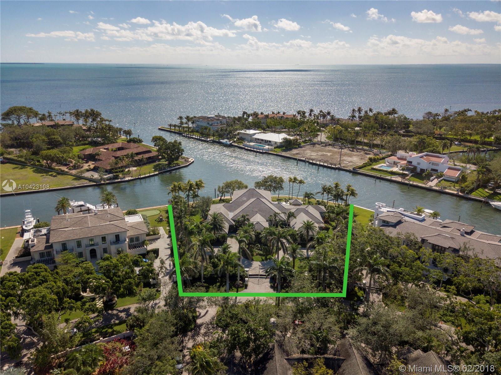 Premiere location within Gables Estates. Boater's dream on this acre+ point lot with expansive water views directly to the Bay. 270' of water frontage on wide lagoon with 52' dock and plenty of room for all your water toys! House features 12k+ SF, 5 beds/6.5 baths including enormous master bedroom and bathroom, grand foyer, massive living room, media room, 2 beautiful offices, chef's kitchen and butler pantry, breakfast room, craft room, wine cellar, generator, 4 car garage and more. Best opportunity in Gables Estates.