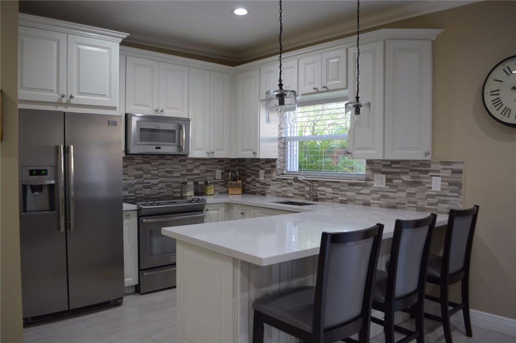 Absolutely stunning remodeled unit. Move right in to this immaculate Townhome with formal dining room, fabulous kitchen with top of the line stainless appliances and quartz counters, pantry closet. Huge fenced backyard with no lawn to cut. Custom built in closets in all bedrooms. Seamless shower doors in absolutely gorgeous baths. Hi hat lighting French doors, dimmers, custom home alarm system, with 4 exterior cameras ,accordion hurricane shutters, wood look tile flooring throughout, so much more must see