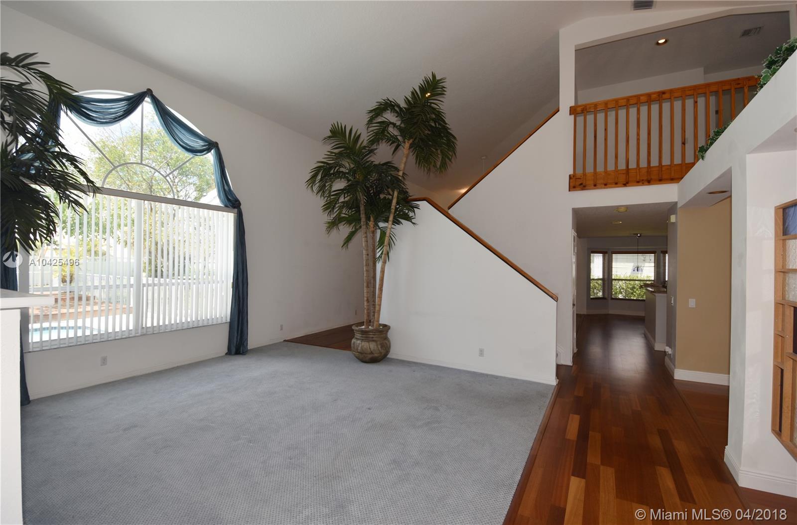 Beautiful Pool home in Carriage Pointe Estates. 4+ Bedrooms (3 upstairs, master and possible 5th/den/office on 1st floor) 3 full baths, 3 car garage with workshop, Remodeled Kitchen and bathrooms, formal living & dining rooms, huge family room, inside laundry room with sink, Pool with huge yard to entertain all the family! Raised deck with built in grill, pergola, adult size swing, lush landscaping, oversized private cul-de-sac lot. Guard Gate. Hurricane Shutters. car lift in garage does NOT convey/stay.