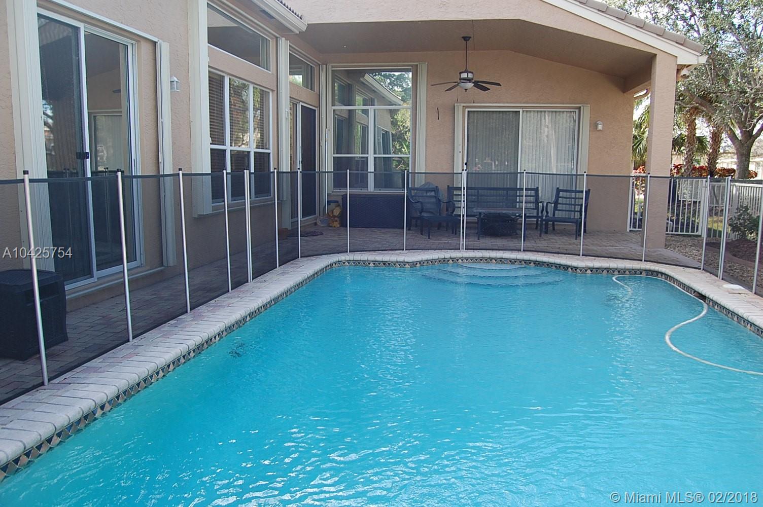 Magnificent 5 bedroom, 3 bath corner lot home with pool & fully updated kitchen, flooring & bathrooms. Exquisite Master bathroom with marble shower, His & Hers quartz top vanities & gorgeous tub. Feels & looks like a fabulous spa! This beautiful home features a three-way split bedroom plan, volume ceilings, open concept family room & kitchen, porcelain flooring, Jack & Jill bathroom, crown molding, accordion shutters. You'll love the covered patio area with brick pavers & a sparkling clean pool. This home is perfect for a large family. Sunset Lakes is a gated community w/ 24-hr manned security, multi-million dollar Clubhouse pool, gym & amenities. Close to A-rated schools, shopping & major highways.
