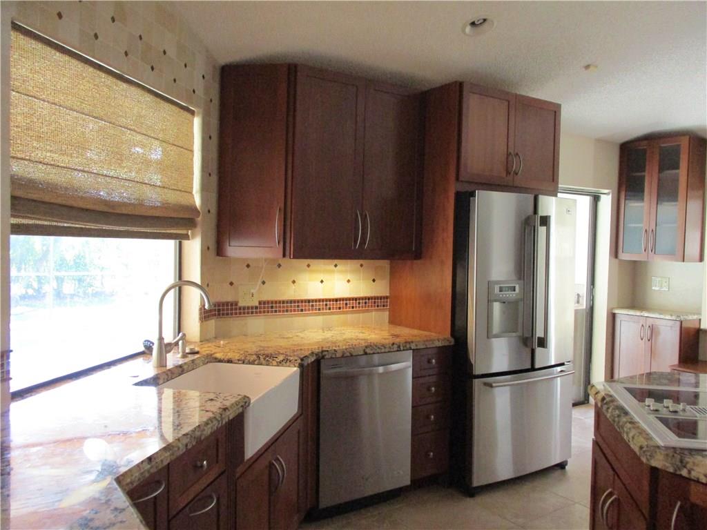 Manicured Curb appeal on Cul de Sac location with circular driveway. Kitchen has Wood Cabinets,granite counters, farmhouse sink, & Stainless appliances with double ovens & wine cooler. Remodeled Baths. MBR has Bamboo flooring, New 12x24 tiles in other bedrooms, Tile throughout living areas. LR and MBR have French Doors that lead out to spacious screened pool/patio area w/custom wet bar. Stone Fireplace, High hats, Hurricane protection, many upgrades. Truly a Pleasure to show.