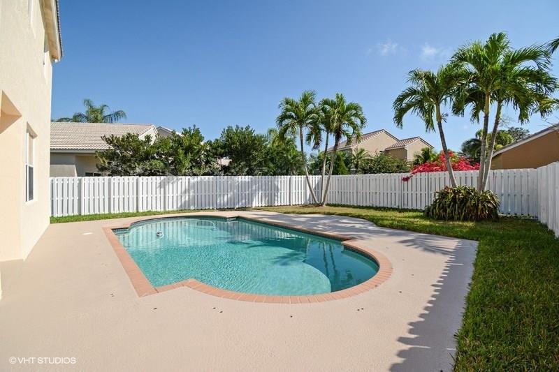 Welcome home to this great 4 bedroom 2.5 bath house nestled on a beautiful private lot with a pool. Formal living and dining rooms. Neutral tile throughout living area. Kitchen and family room overlooking huge backyard and pool, great for entertainment. Spacious bedrooms with lot of light. Newer A/C. Enjoy great community amenities such as playground, basketball and volleyball courts and beautiful areas for kids to play. Guard-gated, close to all "A" schools.