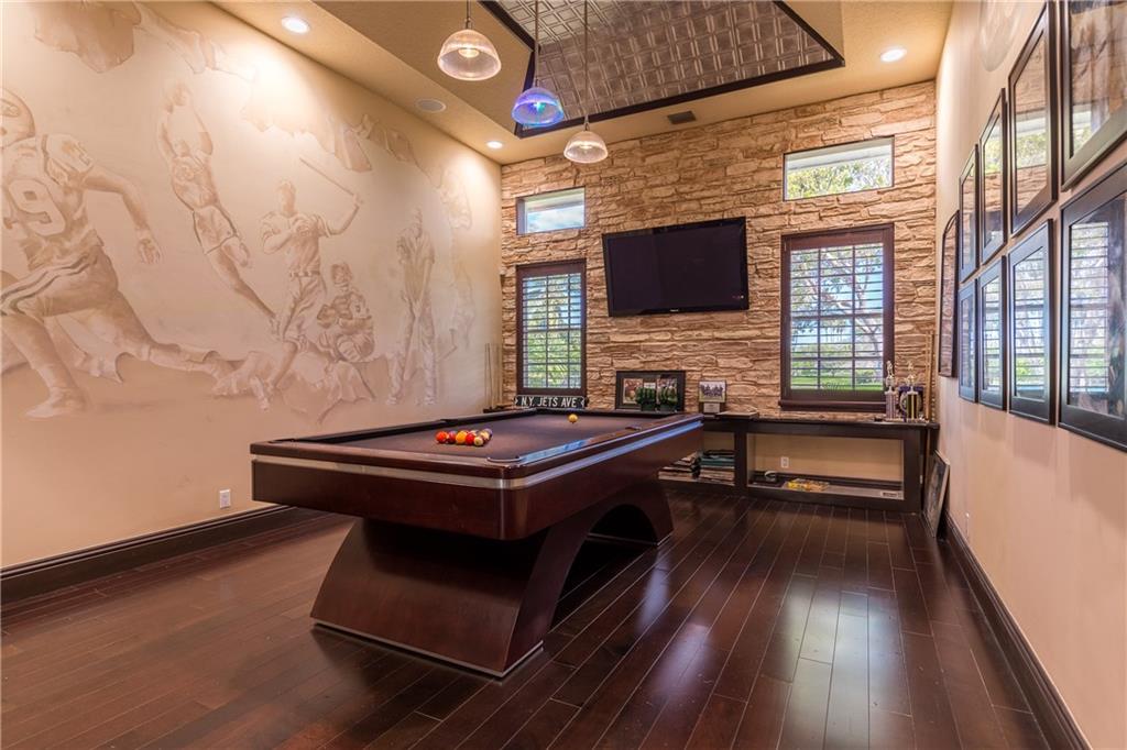 Luxurious 5 Bedrooms, 5.5 Baths plus HUGE entertaining room with pool table and full bar /wine cooler. Upgrades Galore! Just remodeled and NEW ROOF! Situated on one of the largest waterfront lots in the neighborhood (400 ft. PLUS) Top of the line appliances, outdoor coal fire pizza oven, 2 outdoor bars for entertaining, Gorgeous pool / hot tub, rock waterfall, fire pit, CUL DE SAC , Marble and Porcelain floors throughout. Shows immaculate! Must see!