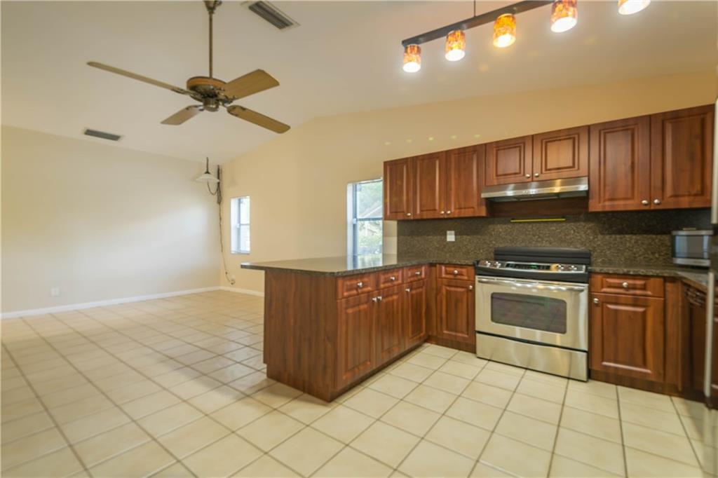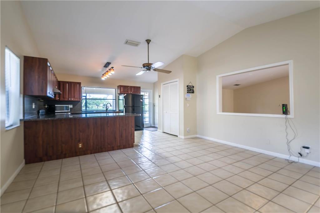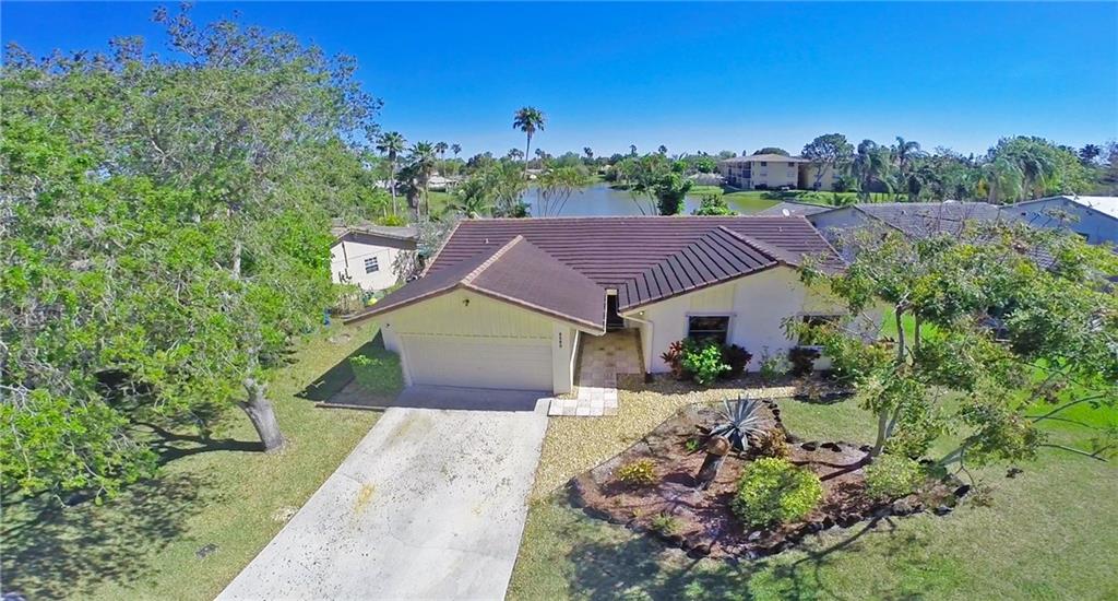 Spectacular water views! Spacious 3 bedroom 2 bath home with vaulted ceilings, covered & screened patio and remodeled kitchen with newer cabinets, counter tops and appliances. Neutral tile foyer, family room & kitchen. Laminate floors in great room, master & bedroom 2. Tile roof replaced in 2006! Garage door replaced, accordion & panel shutters. Bathroom 2 remodeled! Master bathroom features updated tile floors & shower. Hot water heater replaced in 2016. A perfect home or indoor & outdoor entertaining!