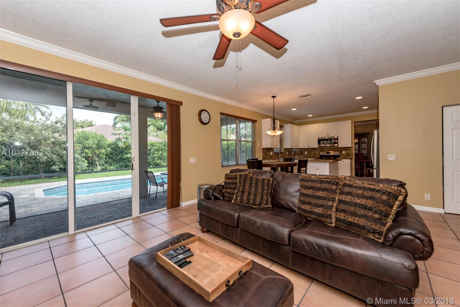 CURB APPEAL!SAVANNA AT WESTON-POOL HOME WITH 6 BEDROOMS, 4 FULL BATHS, A HUGE BONUS ROOM AND 3 CAR GARAGE.ONE BEDROOM AND ONE FULL BATH ON MAIN LEVEL.UPGRADED KITCHEN FEATURES GRANITE COUNTERS, ISLAND,STAINLESS APPLIANCES,BREAKFAST AREA AND PANTRY. FORMAL DINING AND LIVING ROOMS, FAMILY ROOM, SEPARATE LAUNDY ROOM,SCREENED COVERED PATIO. TILE DOWN AND LAMINATE ON STAIRS AND 2ND FLOOR. 6TH BEDROOM IS CURRENTLY USED AS OFFICE OFF MASTER BEDROOM. ENJOY THE SAVANNA CLUBHOUSE AMENITIES.