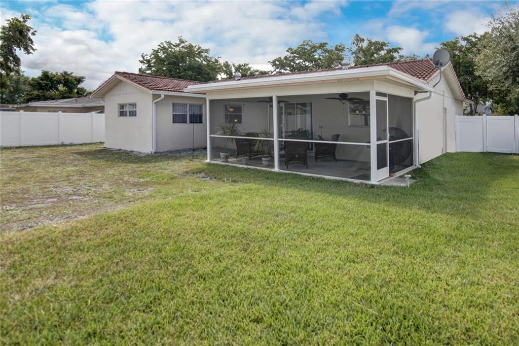 BEAUTIFULLY UPDATED 3 BEDROOM AND TWO BATH SINGLE FAMILY HOME IN SOUGHT AFTER PALM-AIRE VILLAGE. Large Living area w/ large new tile throughout the main living area, & dining area kitchen. Updated kitchen w/white cabinets, Corian counter tops, white appliances, tile back splash and lot of cabinets. New light fixtures. Large master bedroom w/Berber carpet, walk in closet and nice master bath. Sizable secondary rooms. New vanities in both bathrooms Huge screened in patio w/ view of large back yard w/white PVC fence. 2015 A/C. Centrally located to highways, shops and restaurants.