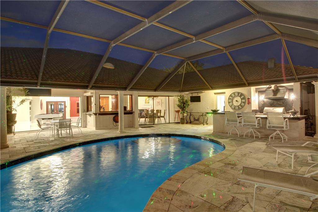 Gorgeous home on an acre lot with plenty of room to expand! Interior features include 4 bedrooms plus office, marble flooring throughout living areas, crown molding, gourmet kitchen w/gas cooktop, stainless steel appliances, custom built-in bar w/ice-maker, custom closets, steam shower, central vacuum. Huge screened patio, salt water pool, gas pool & spa heater, summer kitchen, gas fireplace, 2 fountains and waterfall. Hurricane shutters and stand-by generator.