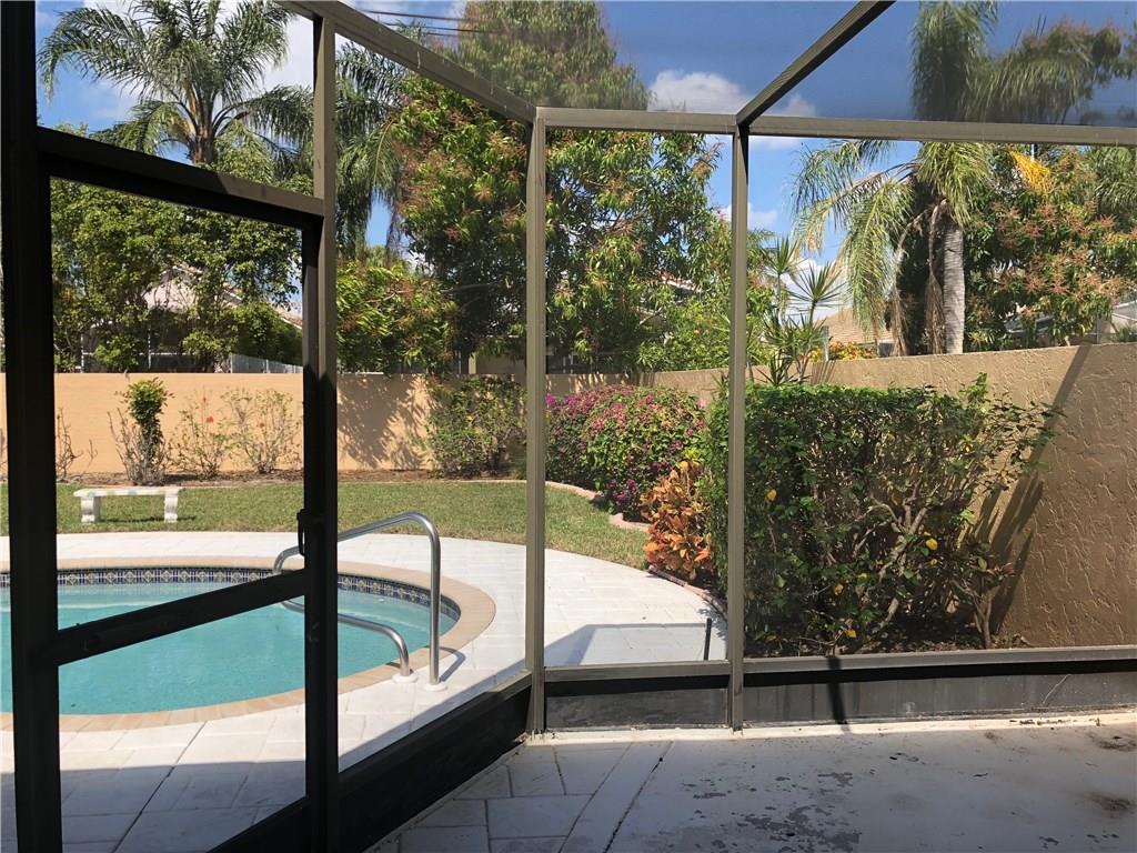 Freshly painted with new carpeting throughout! Spacious 3 bedroom, 2 bathroom home with pool located on a corner lot in a private gated community of only 36 homes. This home features tons of natural light, skylights, and an open floor plan. The backyard area features a screened porch, pool, privacy wall, and beautiful landscaping. A-rated school district close to shopping and entertainment. Villa Portofino is a rare find with no equity and low HOAs that include lawn maintenance. Bring all offers!
