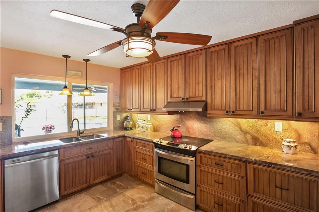 This is the house you have been waiting for. Large home, kitchen & all baths remodeled, situated on a park-like lot. Many features & upgrades: 187'+ add'l 2063 sq. ft. of canal frontage. Granite & S/S custom Wolf-In-The Woods kitchen, bath & utility rm, PGT Hurricane impact windows & sliders, new flat roof 2017, custom window coverings, Diamond Brite pool w/auto chlorinator, D-E Filter, MDA garage door. Enormous 34'x16' covered patio, circular drive, commercial grade fence, shopping, universities, + more.