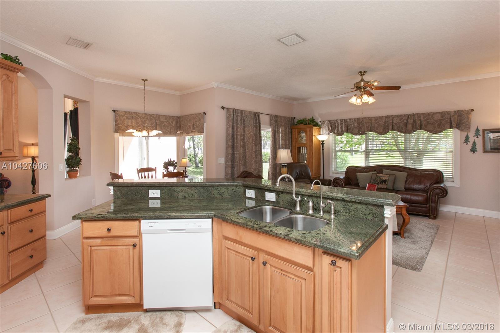 This spacious and beautifully landscaped 3Br/2Ba with 2-car garage home is on a corner lake lot, nestled in the family-oriented community of Waterside, in Spring Valley. It's located near shopping, highways, parks, movie theaters and A-rated schools. It boasts an open floor plan with an open kitchen, overlooking an over-sized family room with crown molding throughout. The kitchen has maple cabinetery, soft-close drawers and granite counter tops, and the bathrooms have been upgraded. There are numerous windows allowing for natural light and a large shaded backyard overlooking the lake with a paver patio. This home has been impeccably maintained and it is in move-in condition! *Reverse Osmosis/Water Softener system not included.
