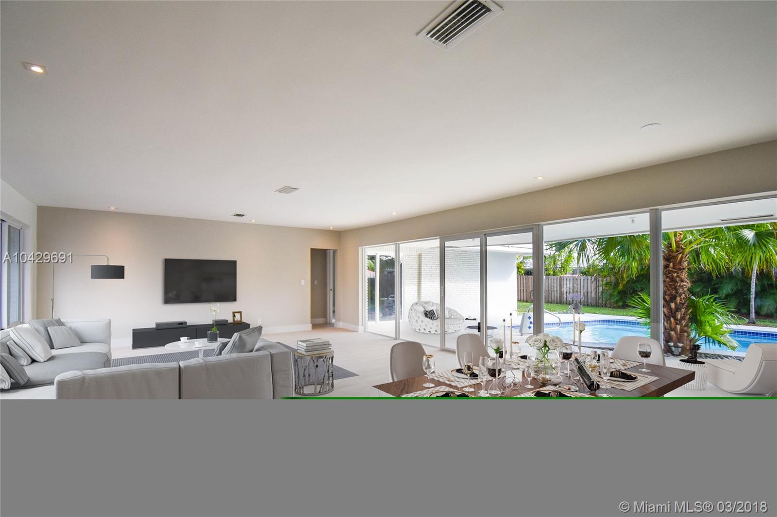 Renovated 2017 to 2018 ALL WITH PERMITS, NEW ROOF 4 Bedrooms, 3 Bathrooms, open NEW kitchen, NEW appliances, NEW quartz counters, gorgeous NEW bathrooms, living rooms wall less, New Impact windows and doors open to the pool, New pool pump, New sprinkle Pum, fresh paint inside and outside. Don't missed this spectacular home in a great street in Hollywood Hills. HOUSE DIMENSIONS TO BE UPDATED BY CITY, Total Areas 3,106 Adjustable Areas 2,460. VERY EASY TO SHOW.