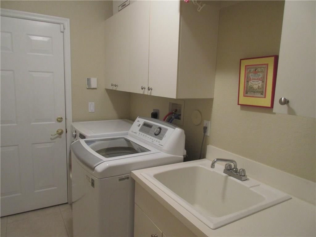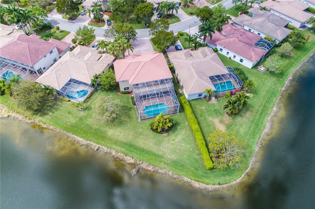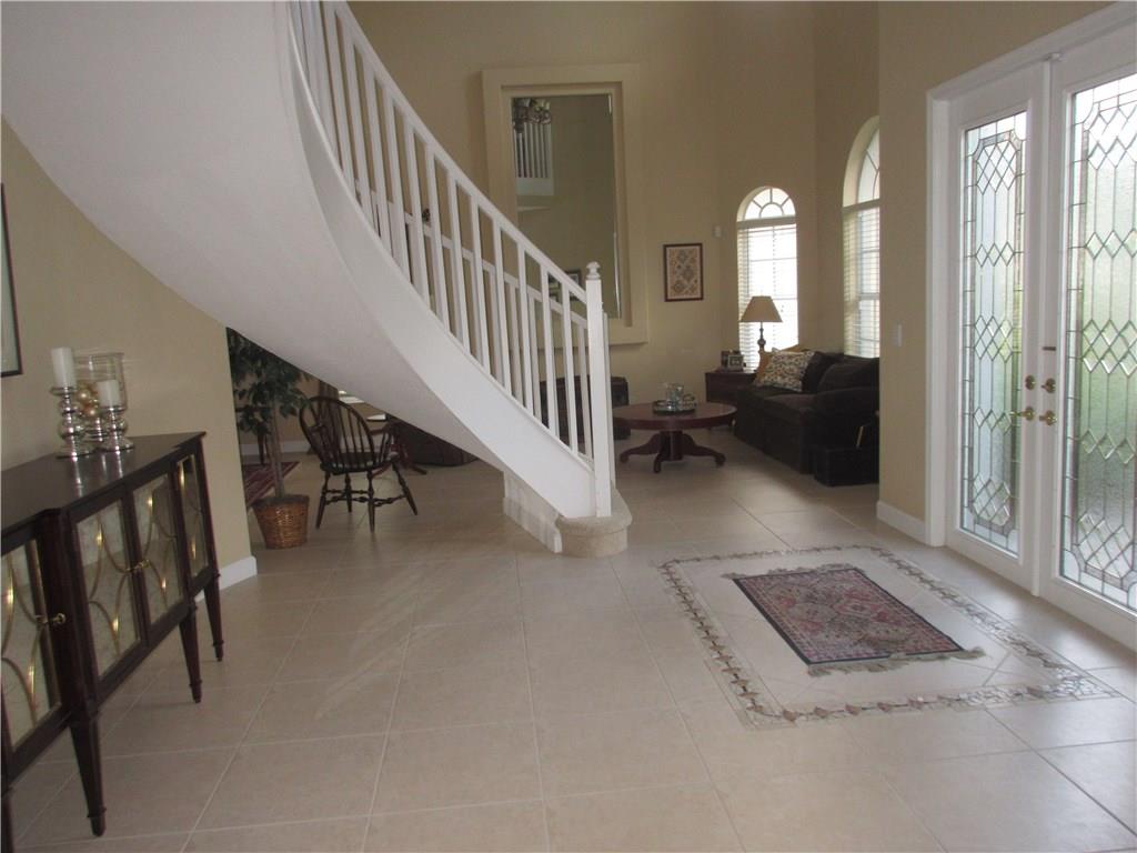 Spectacular lakefront home. 5 bedrooms+office, & updated bathrooms. Beautiful new kitchen with wood cabinets quartzite countertops, provides a snack bar with stools, & a 10' high ceiling in the breakfast area and top of the line stainless steel appliances. New carpeting just installed. The winding staircase leads to the master bedroom with sitting area, 2 walk in closets and double French doors to the screened balcony patio with panoramic view of the water & the pool. Hurricane shutters. Great schools