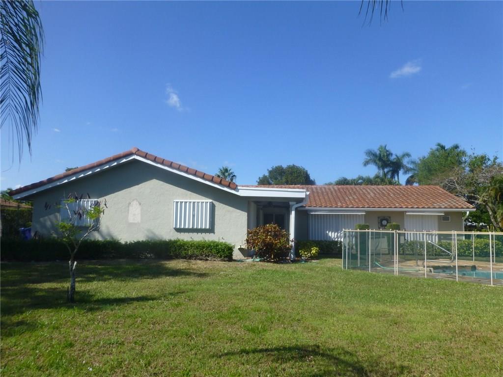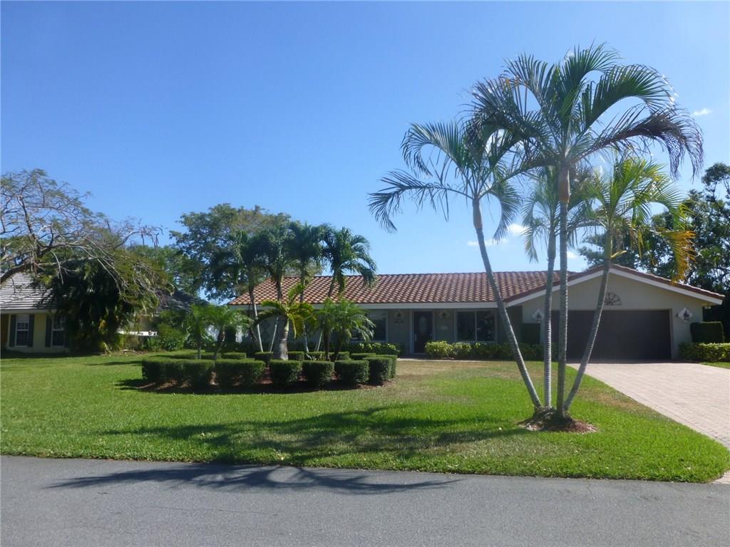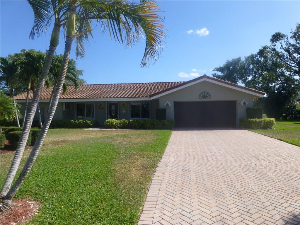 This gracious, classic style home has been lovingly cared for and is waiting for a new owner to update to their personal taste. The major work is done...newer roof, impact windows and accordion shutters, paver driveway. Wood floors, master bedroom spit for privacy, stainless steel appliances. French doors open to a flagstone patio from living room, family room, master and guest bedrooms. The setting is a large lot on a quiet cul de sac overlooking a tranquil lake and fountain. Golf course close by.