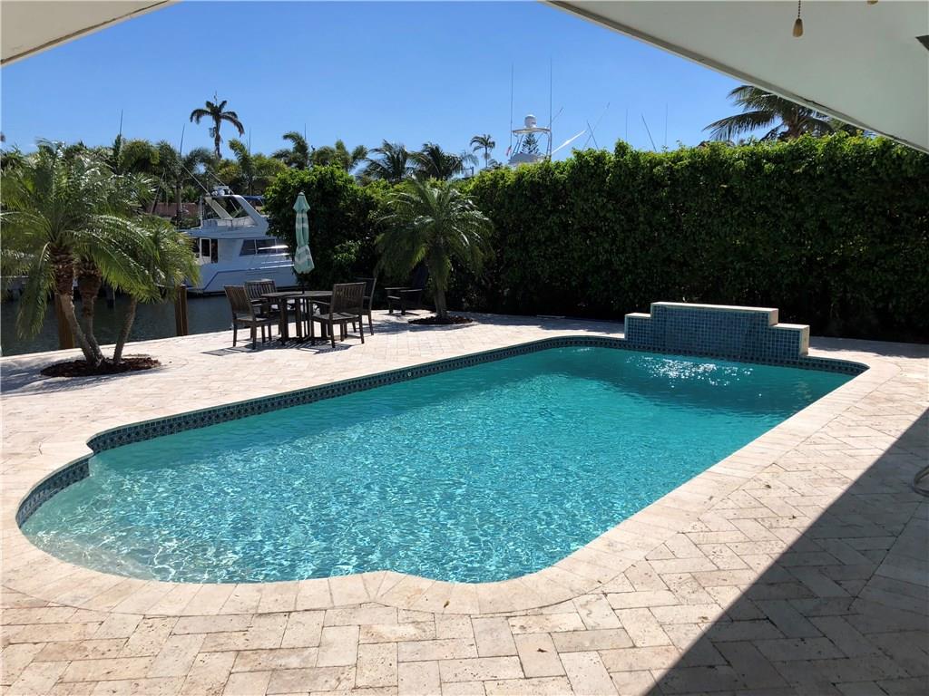 BRAND NEW ROOF completed Sept 2018-after 6 mos of waiting on tile, we now have a new roof ready for your buyer!! 4/3 Impact Doors and Windows Large kitchen w/ granite counters, movable center island, stainless steel appliances and pass through bar to pool and patio, Split bedrooms, tile and wood flooring, large laundry room, cabana bath, expansive patio for outdoor tropical entertaining overlooking 80 ft of dockage and heated pool with waterfall feature, sky high hedges on both sides of property for complete privacy from neighbors at this prime cul-de-sac location- water and electric at dock will accommodate a very large boat - water depth at dock is already good and deep EAST EXPOSURE