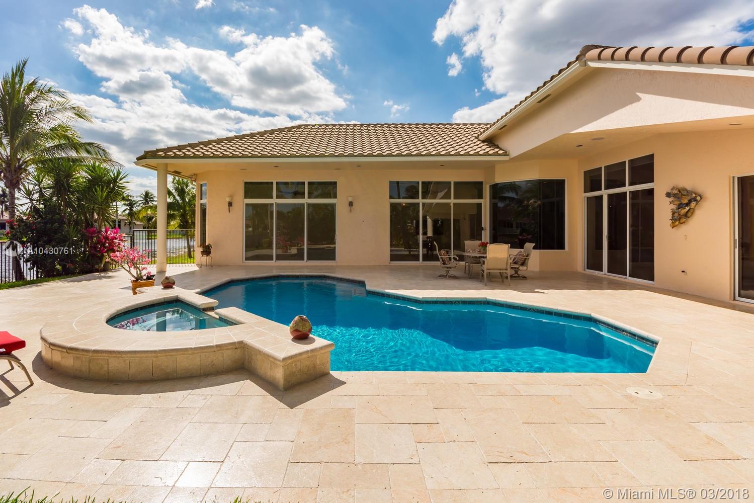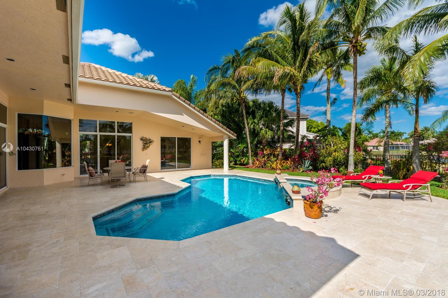 Tastefully upgraded, executive home nestled in the heart of Weston Hills Country Club, featuring a private cul-de-sac location with the best 270-degree water view in the community. Enjoy the mesmerizing sunrise & moon rise from the stunning pool area, boasting a salt pool with French marble designed deck surrounded by lush tropical landscape.This serene oasis features all common areas finished with Jerusalem stone. You will spend many cherished moments preparing gourmet meals in this chef’s kitchen. This home offers many spectacular upgrades including, but not limited to, motorized blinds, piano/pool room, impact windows & doors, master bath adorned with marble and onyx, wood flooring in all the bedrooms and library and a newer roof. Excellent school district & easy access to highways.