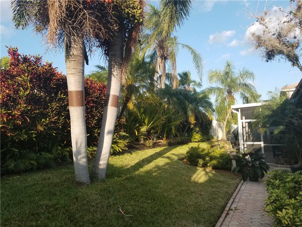 Great 3/2 Single Family Home w/ 1 car garage in a gated community with a low $250/month HOA. Live 15 minutes from the beach in this easy/bright house with an open floor plan and Vaulted ceilings built in 1997. Separate laundry room, community pool,GYM and more ! Small beautiful complex . This house has NO neighbors in the back. Screened patio, walking closet, easy floor plan. Association includes all amenities plus internet and HD cable.