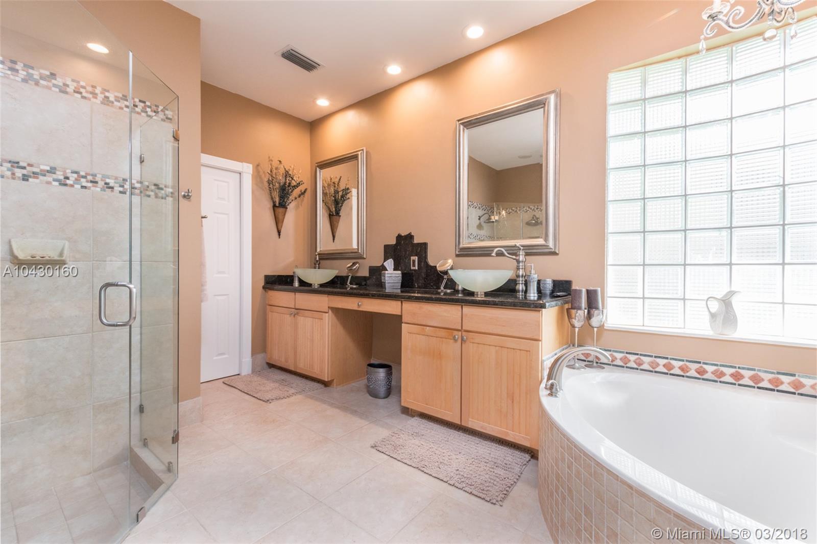 Custom Essex model shows like a model home. Superb curb appeal, lushly landscaped front and back. Renovations galore in this sprawling one story. Enter Resort style pool backs to private water with no neighbors behind. Extended travertine deck with fire pit, rock formation pool with waterfall, Tiki hut with deck and electric, outdoor shower, fully fenced and lushly landscaped. New Gourmet kitchen with shaker cabinets, center island, Stainless Steel appliances, wall oven, wine refrigerator, convection microwave. Extensive crown moldings, New contemporary cabana bath, Built in office with closet, Custom bar in living room with granite top. Decorator window treatments and light fixtures. Renovated master bath with vessel sinks, roman tub.