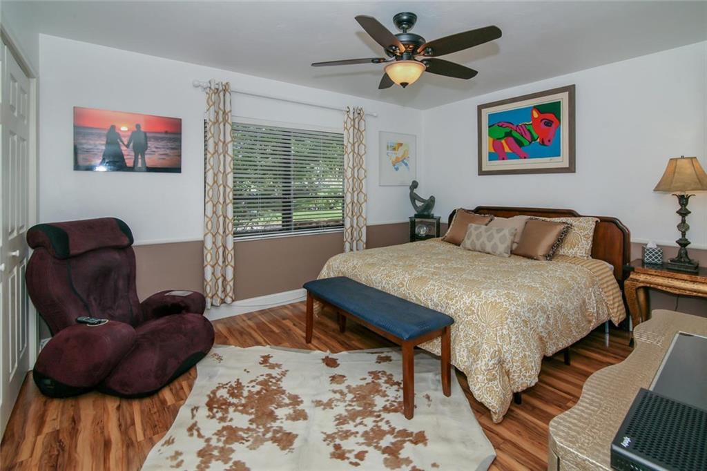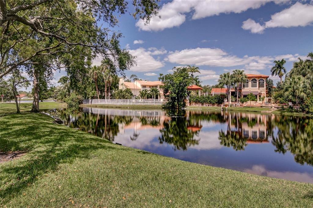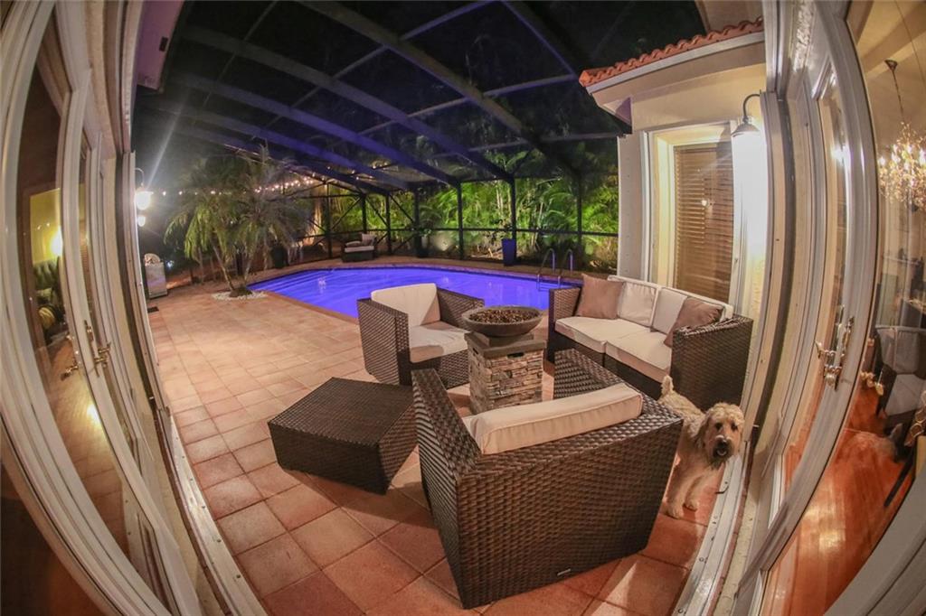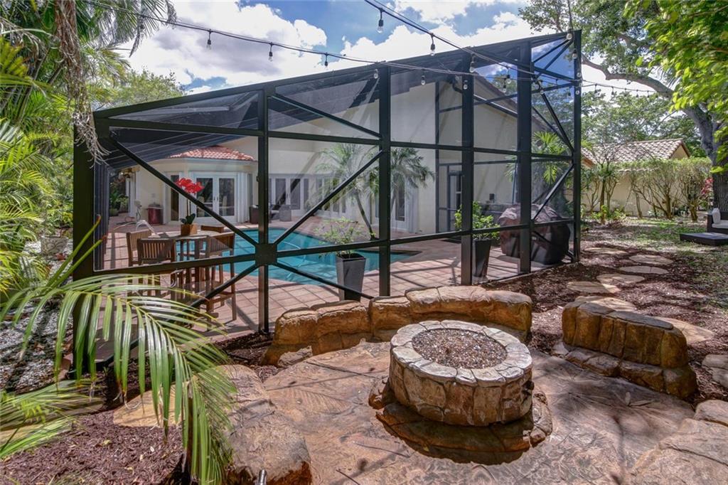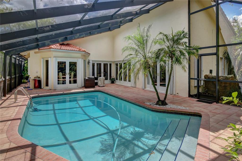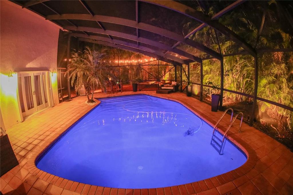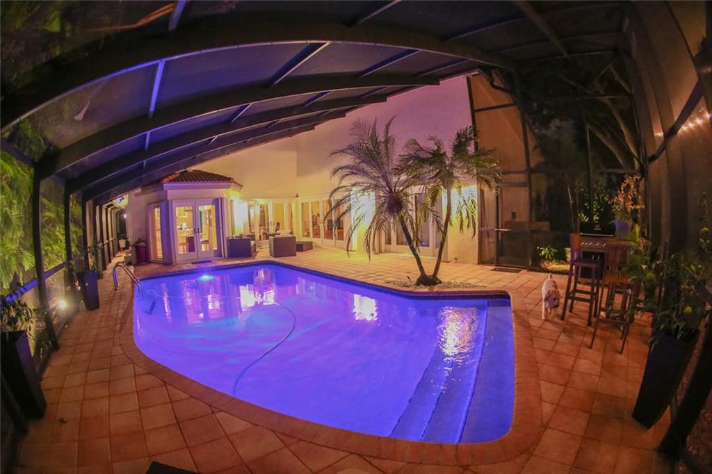 Wide Open Floorplan as soon as you Open Door w/ High Vaulted and Coffered Ceilings, Oak Wood Floors, Plenty of Natural Light. Oversize master Suite, Triple Split Bedrooms. Renovated Kitchen w/ newer Stainless Steel appliances, granite countertops, large breakfast area with bay window and snack bar with glass door Cabinets, (renovated baths), Amazing Backyard w/ large pavered screened heated pool area w/ propane fire pit and plenty of space for entertaining. Corner Lot with Lake View. Roof 2007. Accordion shutters.