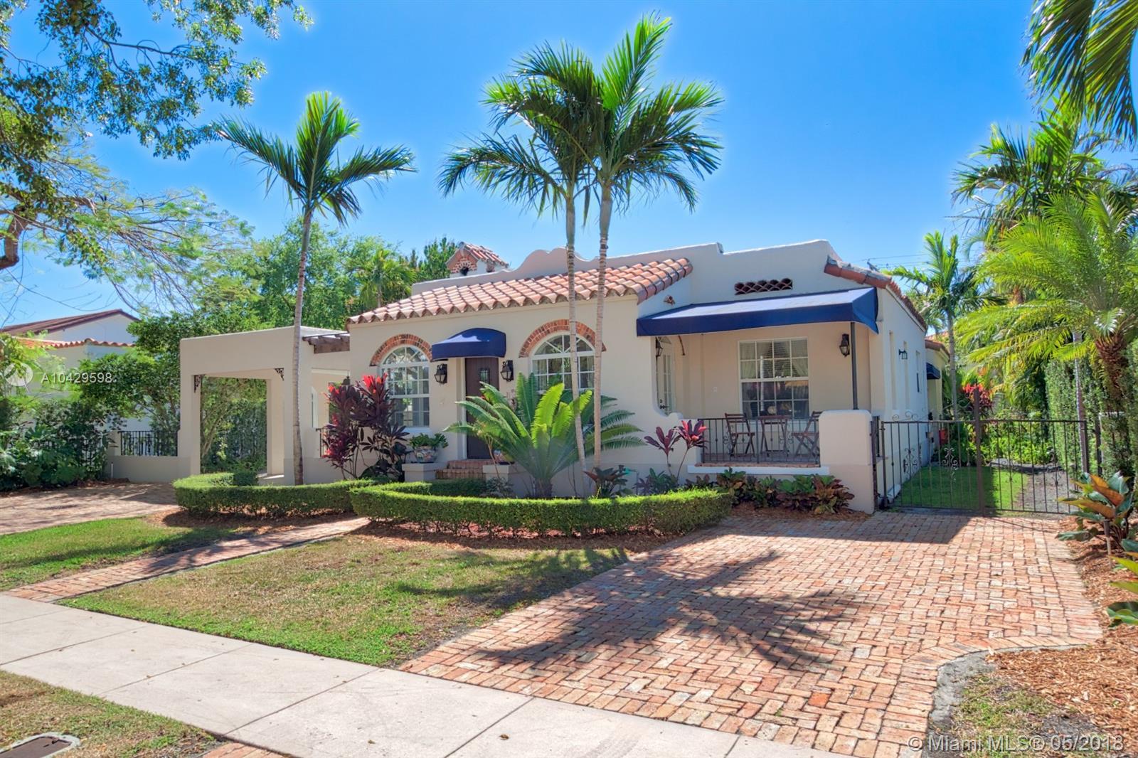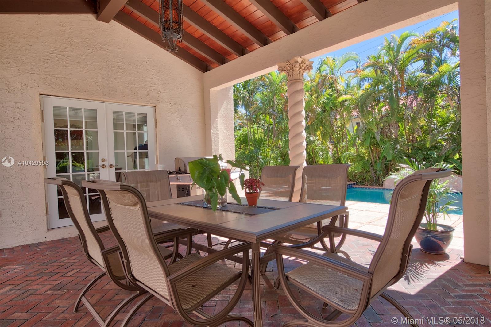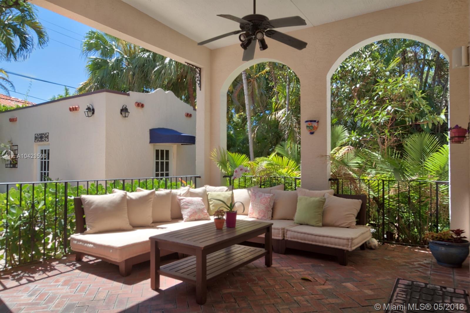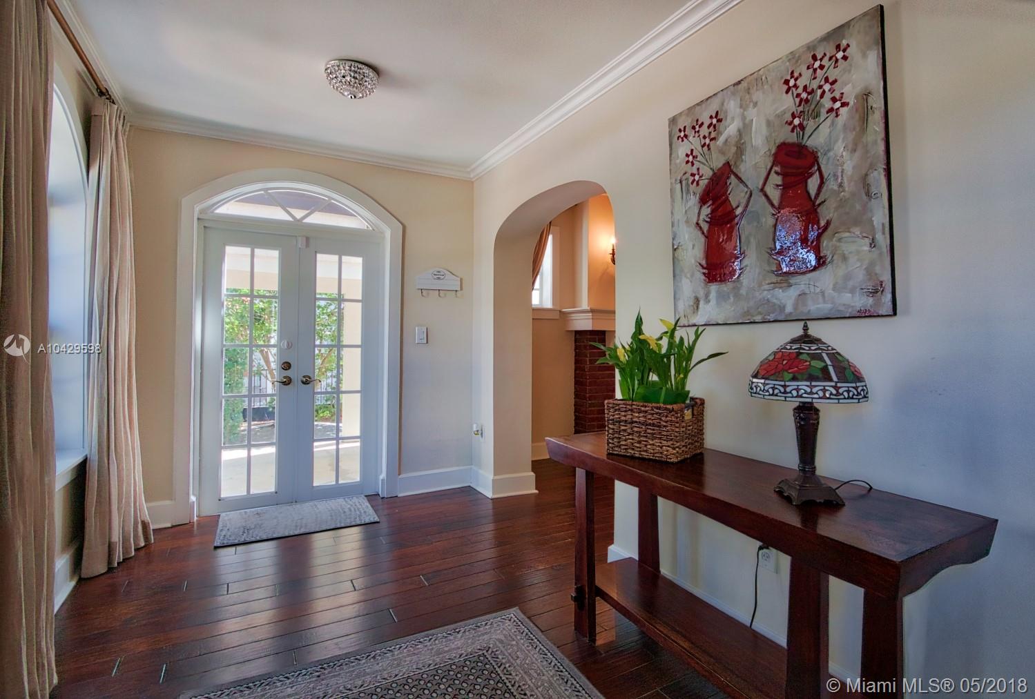 Old world & modern luxury mingle in this Mediterranean Revival gem. Designed by renowned Architect H. George Fink, historic designated in 1997, after major expansion and remodeling. High ceilings of exposed beam featured throughout many rooms, brick accents on arches and chimney and all brick fireplace, wide plank hardwood floors, porches & verandas honor the history of this home. Gourmet kitchen with island, chef grade appliances, formal living, formal dining room, enormous family room flows to covered terrace. House wraps around a courtyard & fountain inspired by southern Spain architecture. Abundant closets, large baths, pool with sheer descent, plus large cabana. Recent re-roof, tented, AC, impact windows/doors. Septic and pool date to 2002. Practical, turnkey and prefect for family!